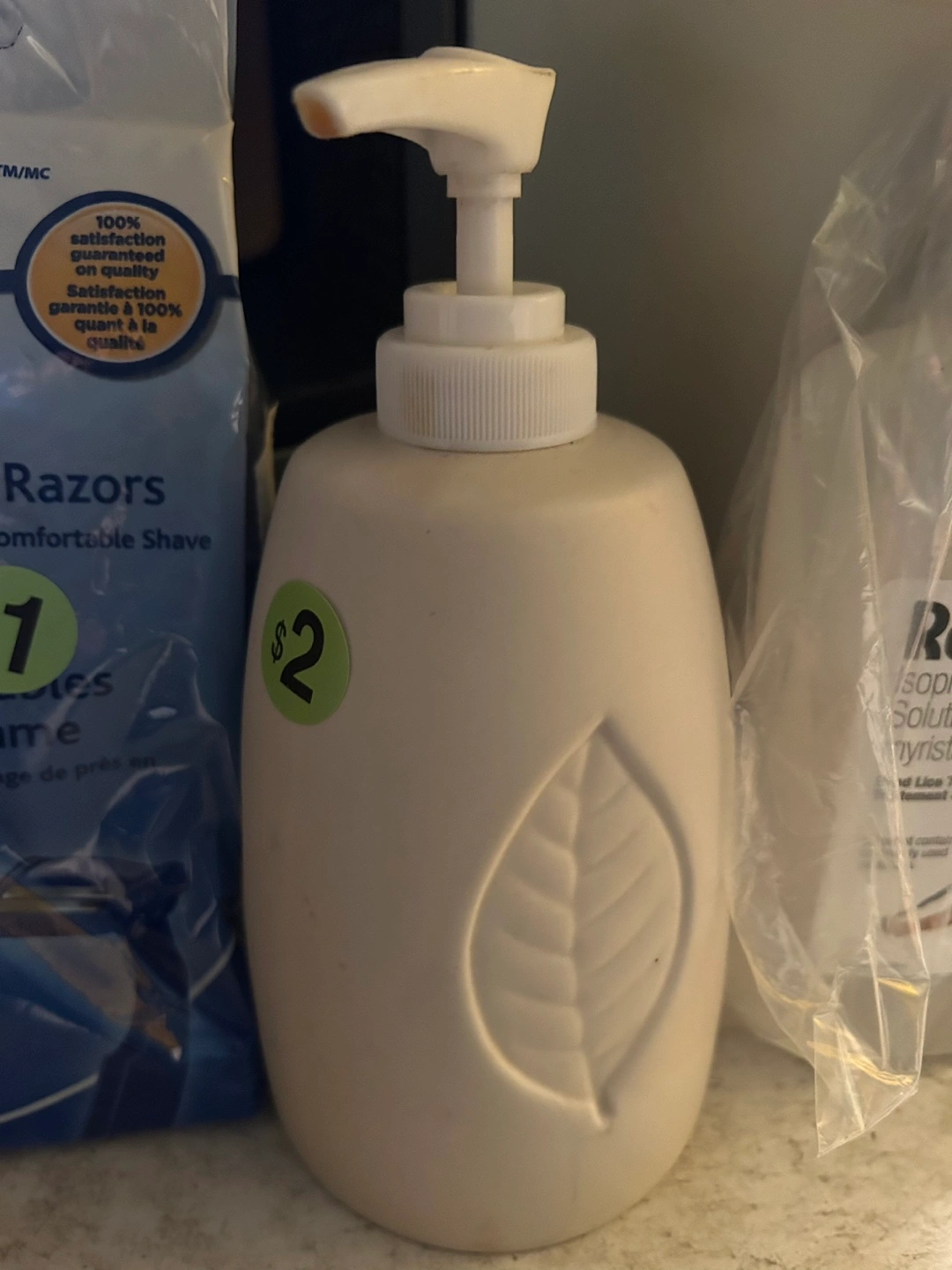 White ceramic soap dispenser with a leaf design. Pump works perfectly. Moving sale. See my other items. Pick up in Rundle, NE Calgary. If listed it is still available!