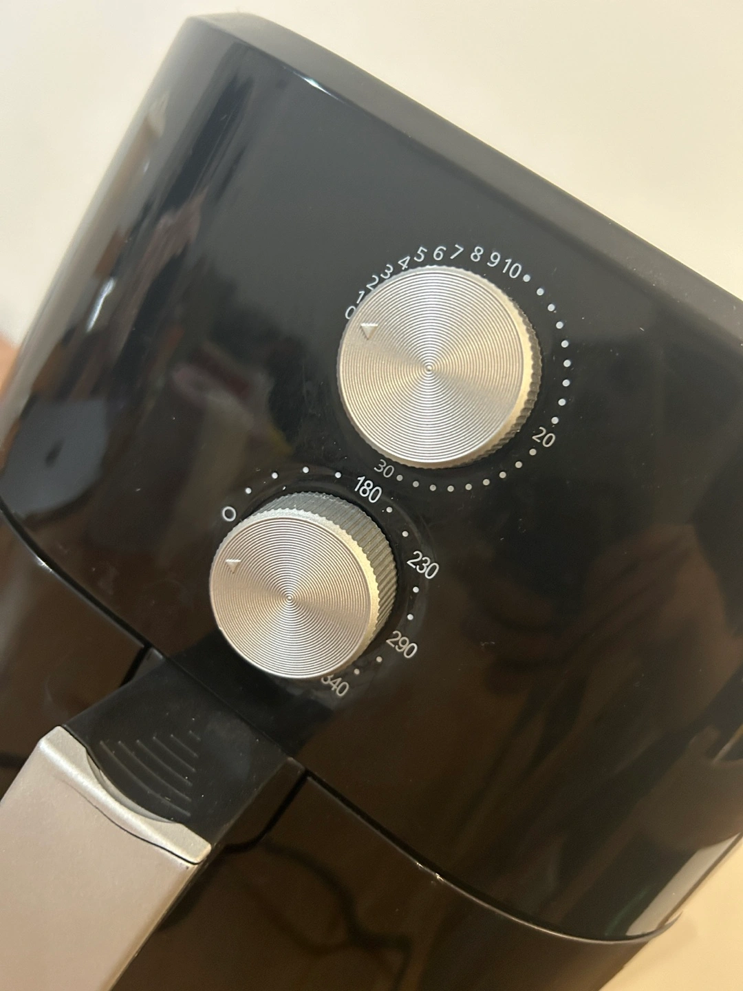 Has two knobs for time and temperature.