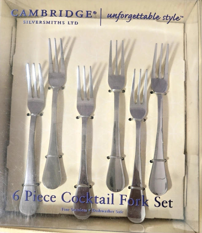 239Set of 6 cocktail forks. Fine stainless, dishwasher safe.