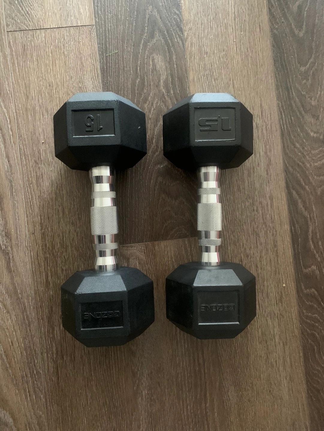 Buy & SellPair of 15 lb DumbbellsPair of 15 lb Dumbbells$15Hexagon shaped dumbbells with a chrome handle. 15 lb. $15 eachConditionGoodWHERE TO MEET1 Grosvenor StView MapSELLERChristinaN London1058 reviews0 chats·0 favorites·10 viewsSEND CHAT TO SELLERHi Christina! I’m interested in your listing.Hi Christina! I’m interested in your listing.Get the Karrot app to chatSign In to chat