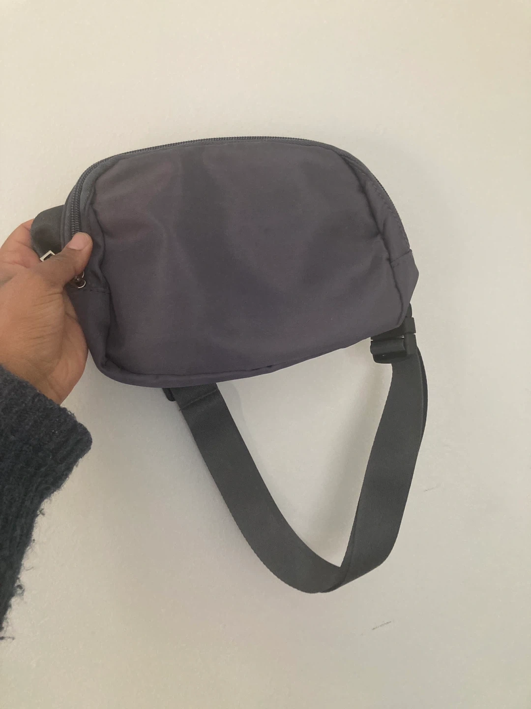A versatile grey fanny pack, perfect for keeping essentials close. It's made from a durable nylon material and features an adjustable strap for a comfortable fit. This bag is great for travel or everyday use!