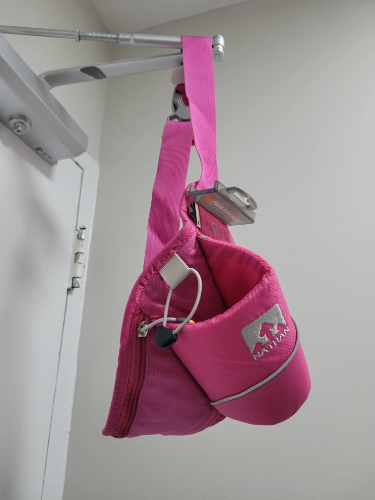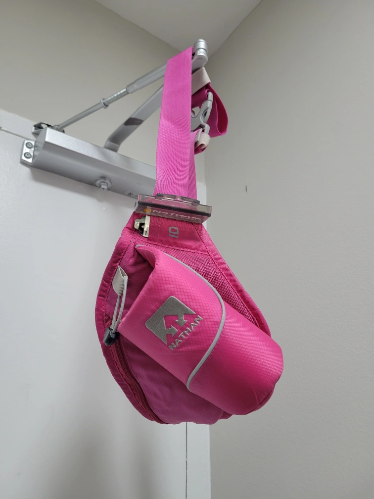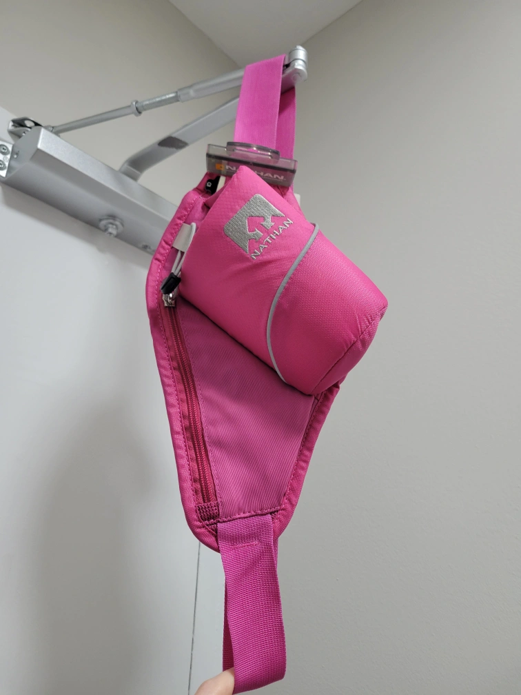 217Pink running belt with bottle holder. Adjustable waist strap. Cash only Pick up only