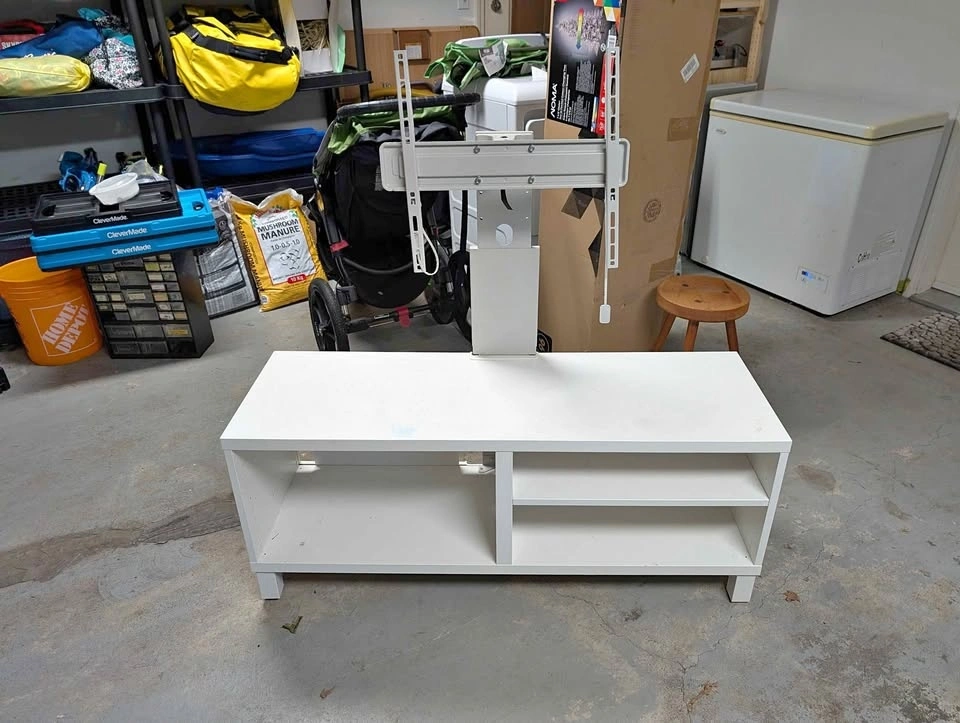Used, fair condition. Some scuff marks but still usable. Will include screws needed to mount a TV. Able to mount my 55" TV to it. Dimensions: 47 1/4" L x 15 1/2" W x 19 1/2" H. Buyer must provide their own transportation. Pickup in Richmond.