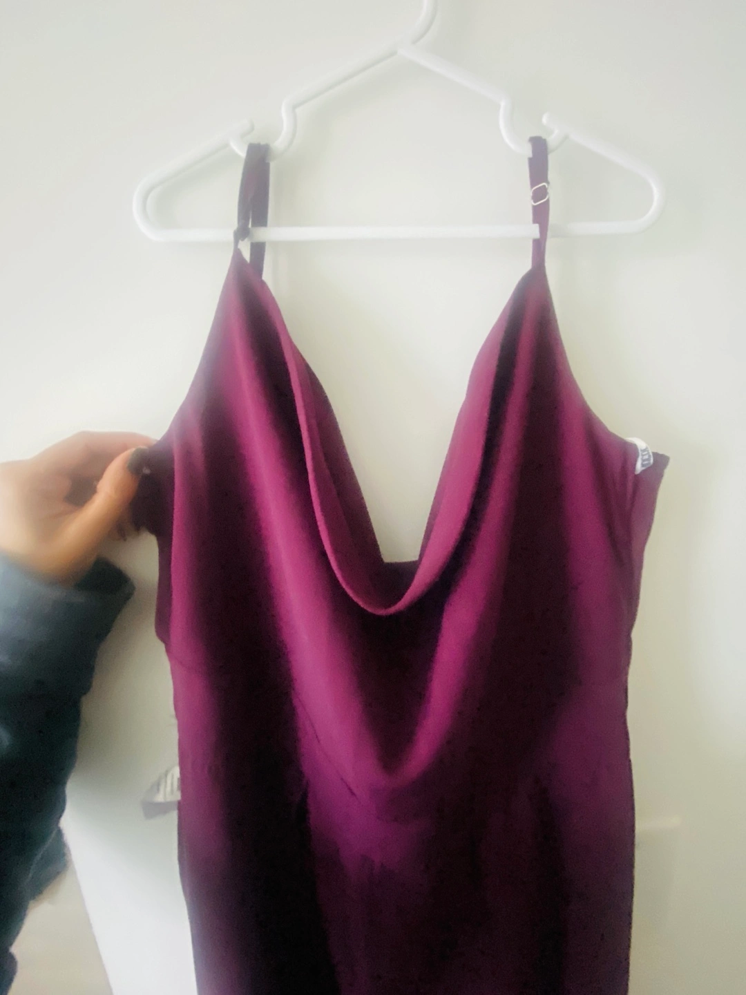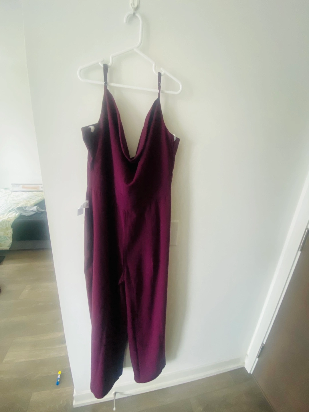 30Wide leg jumpsuit with a cowl neck and spaghetti straps. Perfect for a night out or a special occasion.