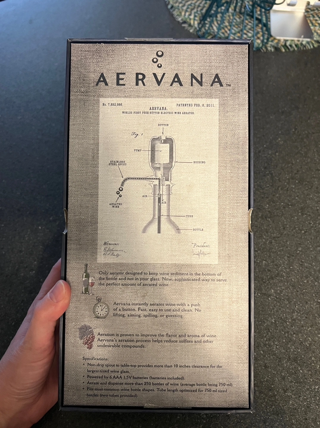 Electric wine aerator. Enjoy enhanced aromas and flavours instantly, with a push of a button.
