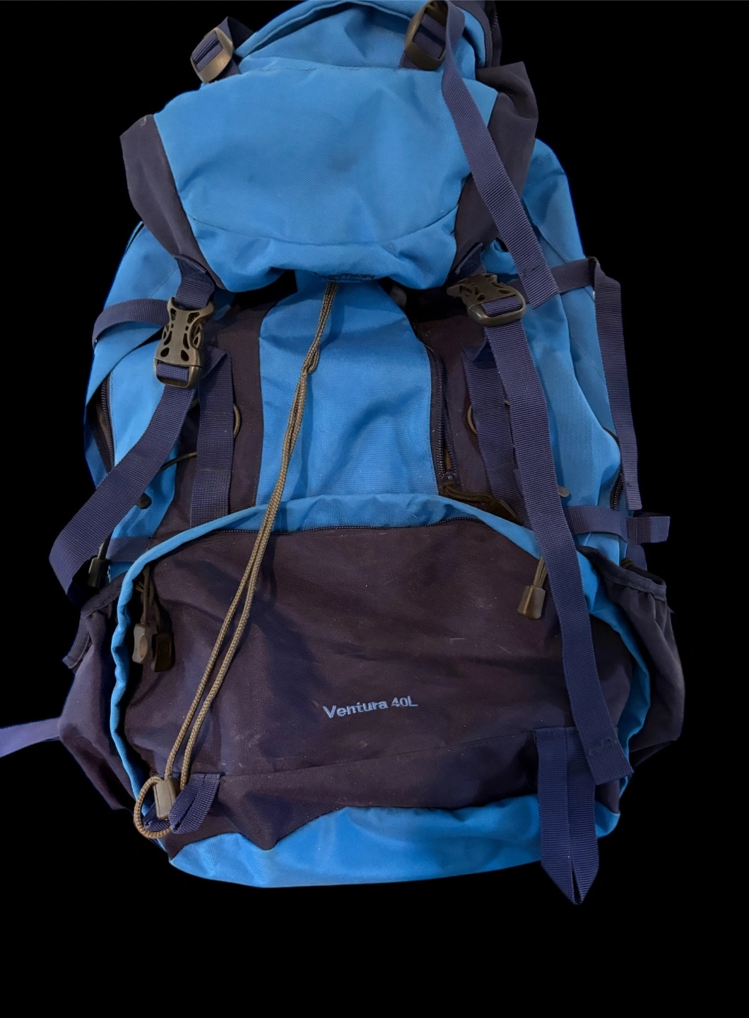 Durable and spacious, the Venture 40L Backpack will keep up with you on your next adventure. Designed with ripstop polyester, the backpack is hydration compatible, with compression straps, zipped security pockets and rain cover. Dimensions: 57 (H) x 37 (W) x 18 (D) cm.