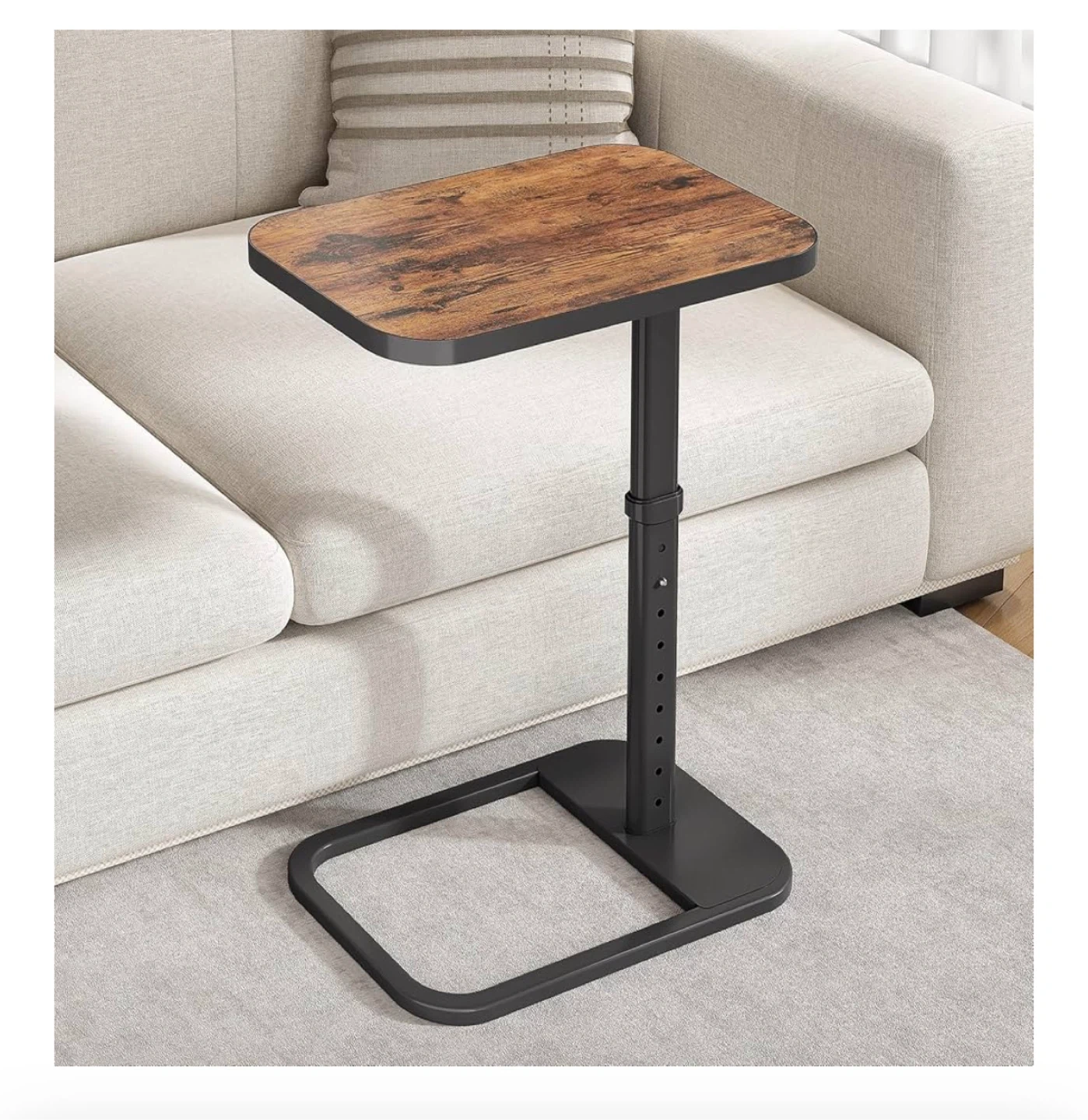 This adjustable height table is perfect for using next to your sofa or bed. It features a 9-level adjustable height from 18.7" to 30". You can easily adjust the height by pressing the latches. The table also has an adjustable spacing of 11".