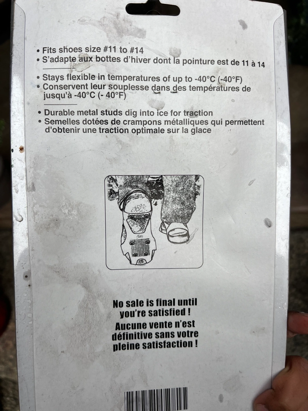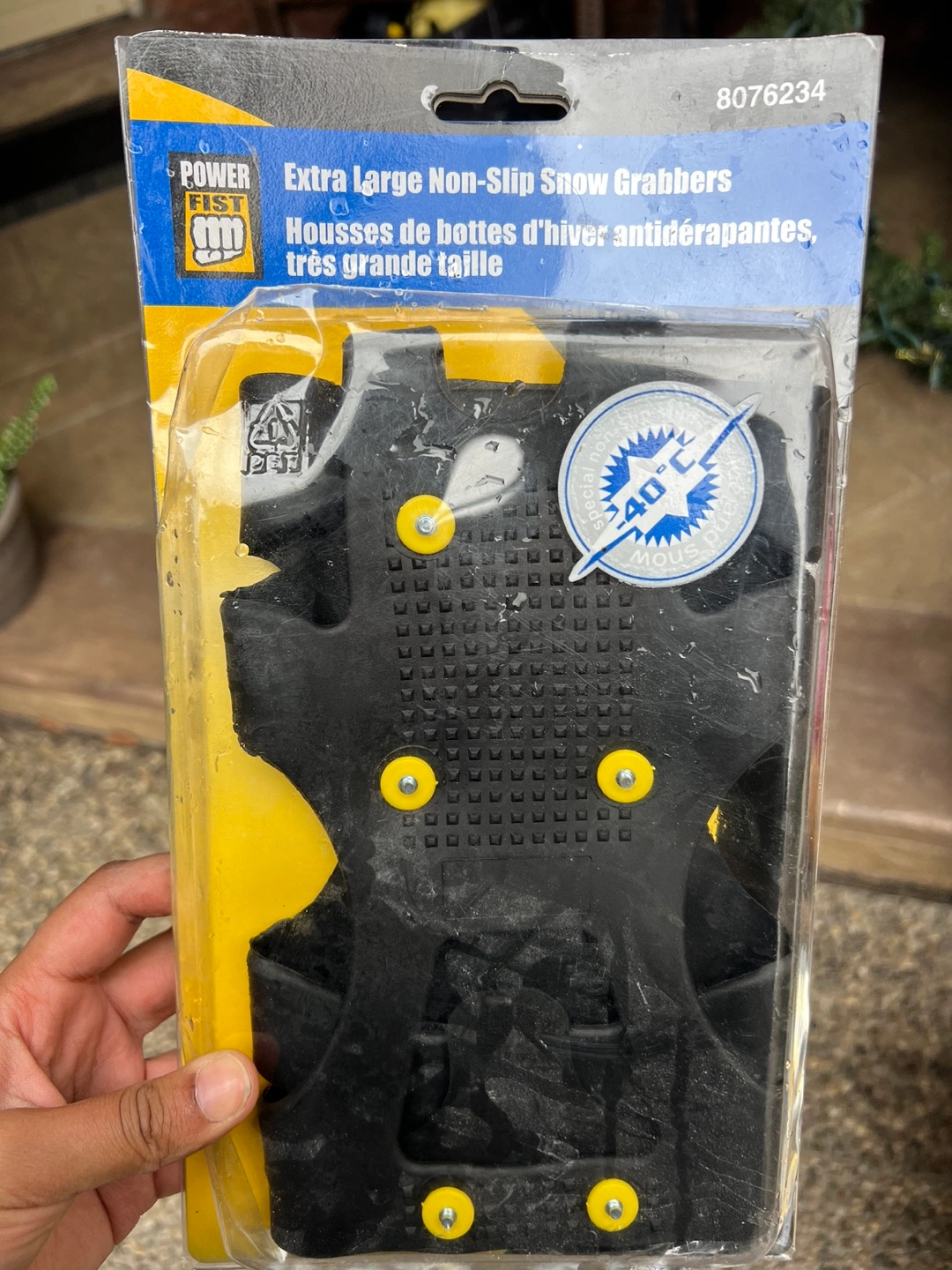 240Extra Large Non-Slip Snow Grabbers. Fits shoe size 11 to 14. Stays flexible in temperatures of up to -40°C (-40°F). Durable metal studs dig into ice for traction.