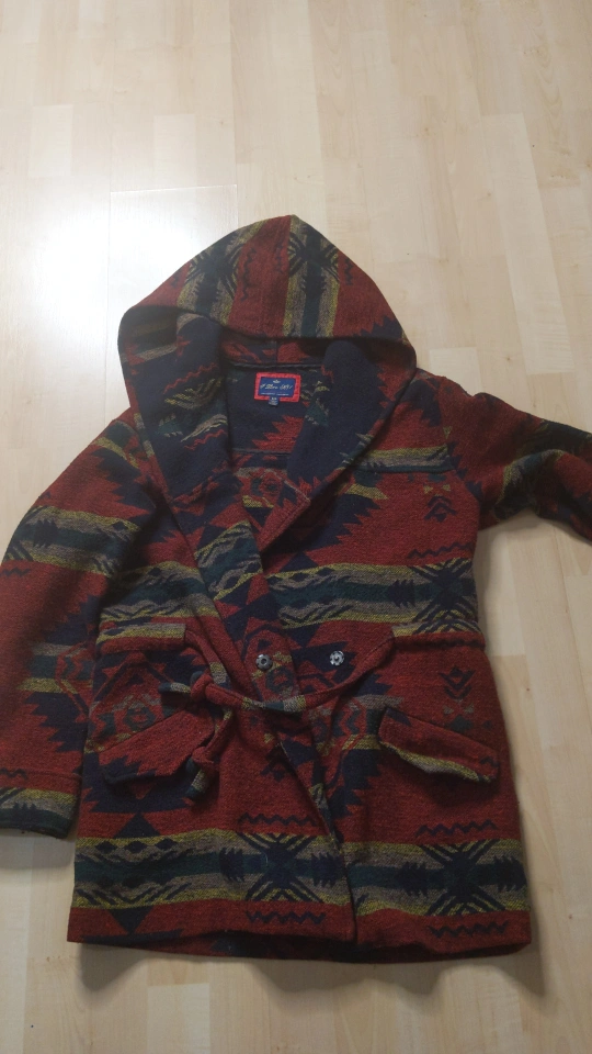 Red, black and green southwestern patterned hooded jacket with a belt. small to medium fit //✨most of my other clothing listings are under $10✨//