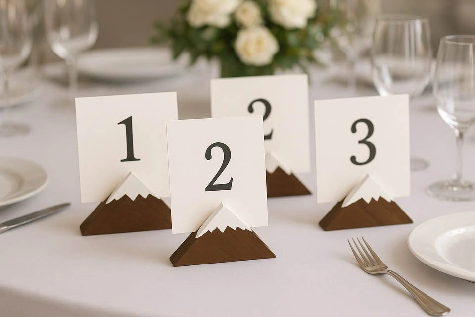 Adventure Wedding Decor: 10 Mountain Table Holders & 3 Signs