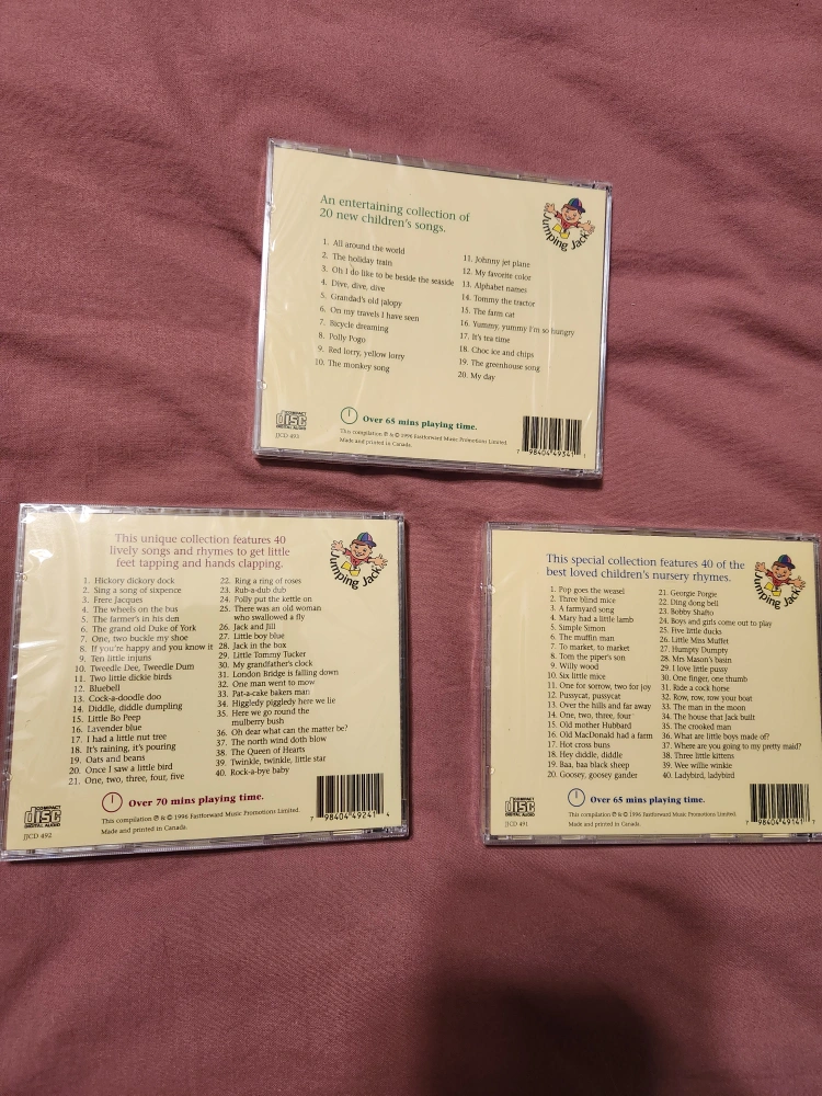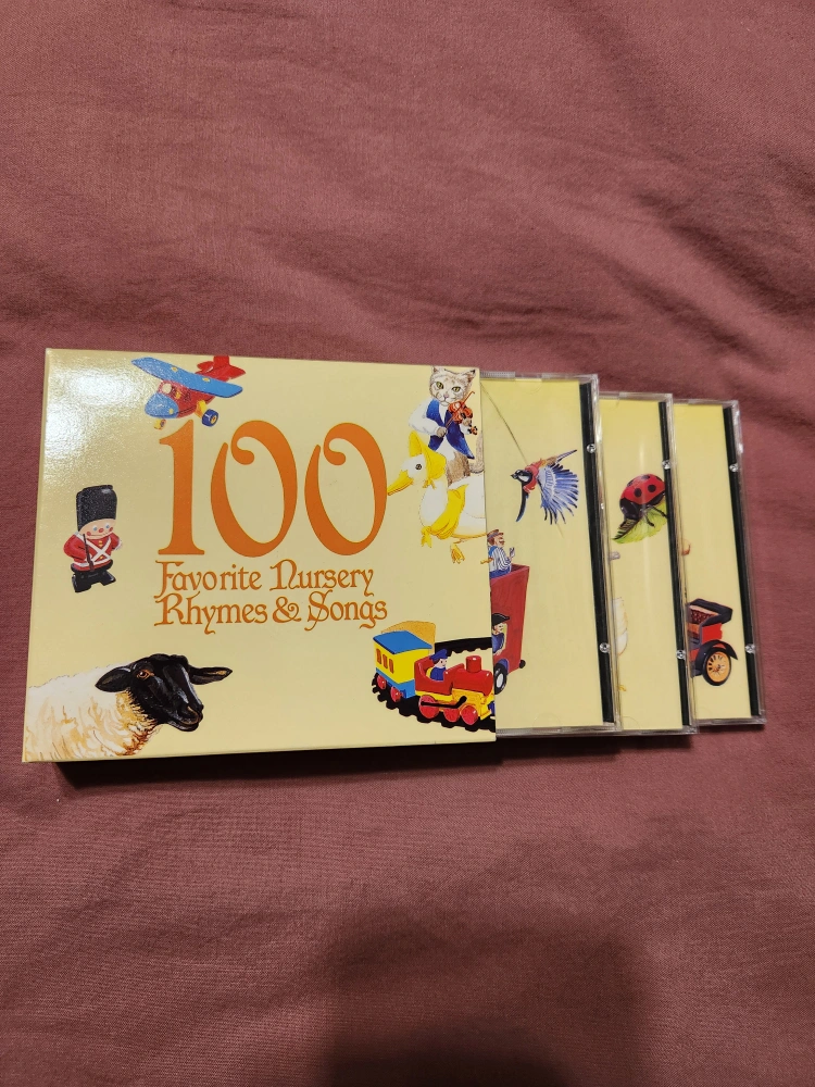 Three CD set, includes 100 nursery rhymes and songs. 40 favorite nursery rhymes, 40 favourite nursery rhymes, 20 new children's songs.