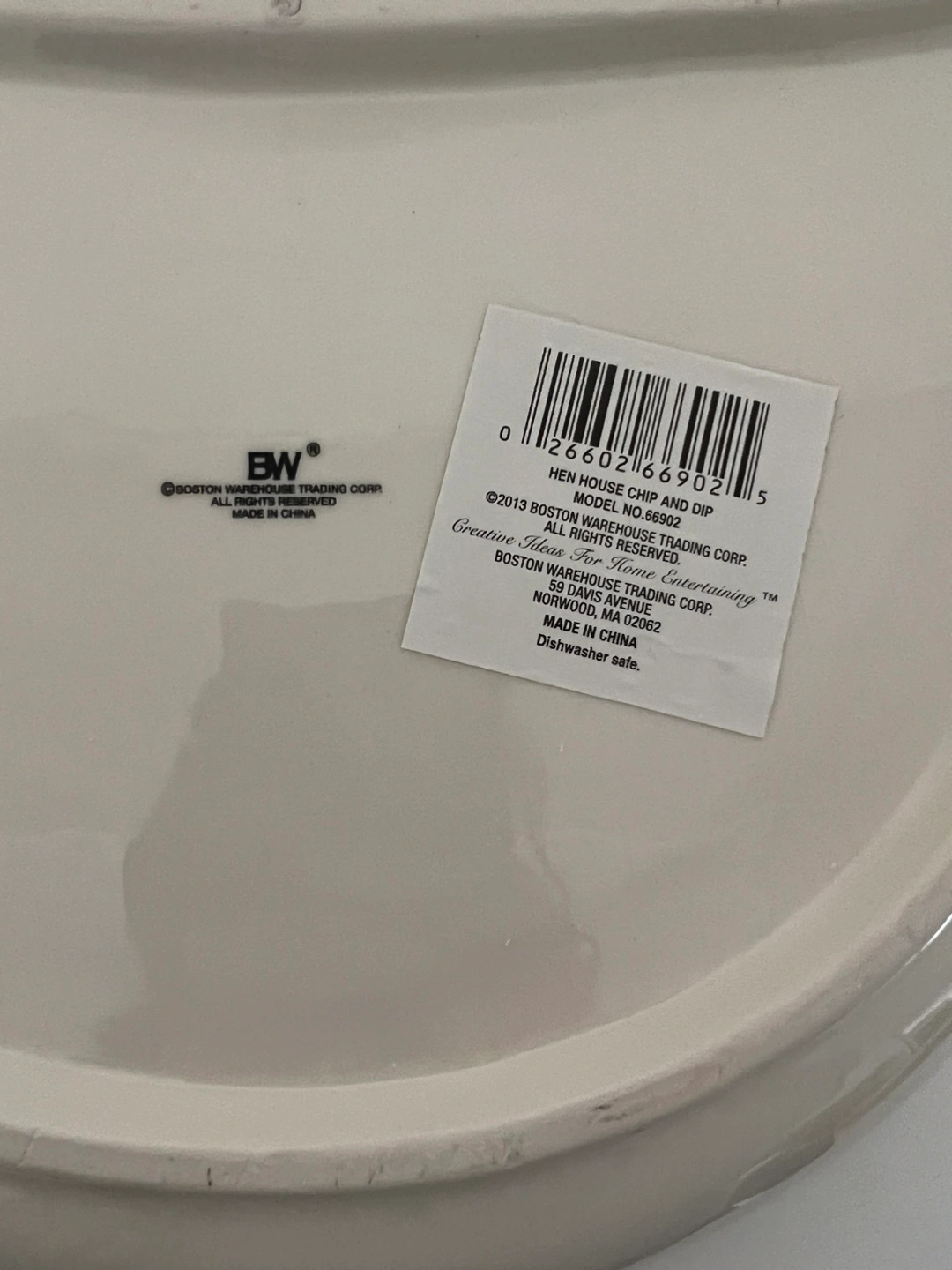 NIB Boston Warehouse Hen House Chicken Chip and Dip Platter