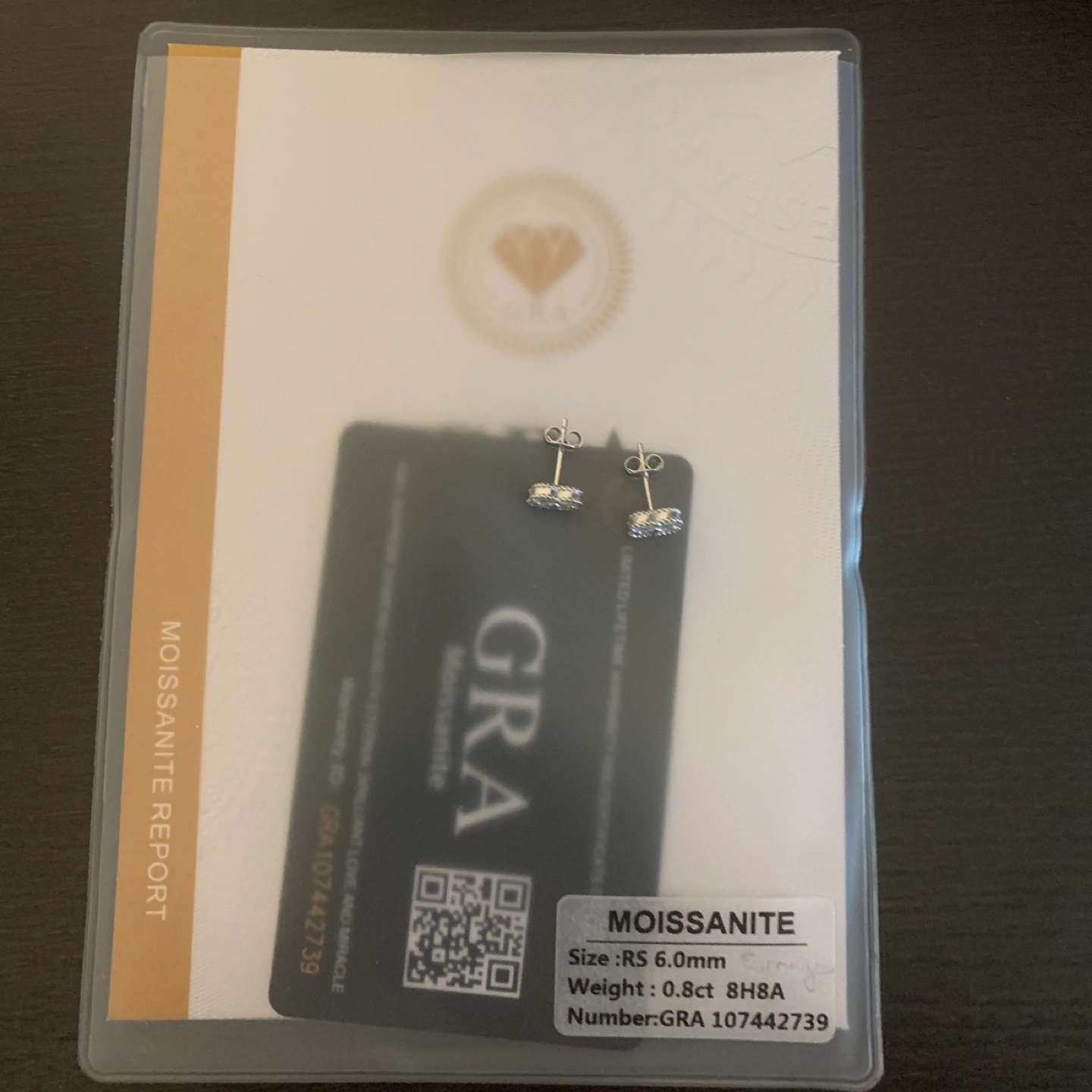 Brand new, includes moissanite authenticity certificate