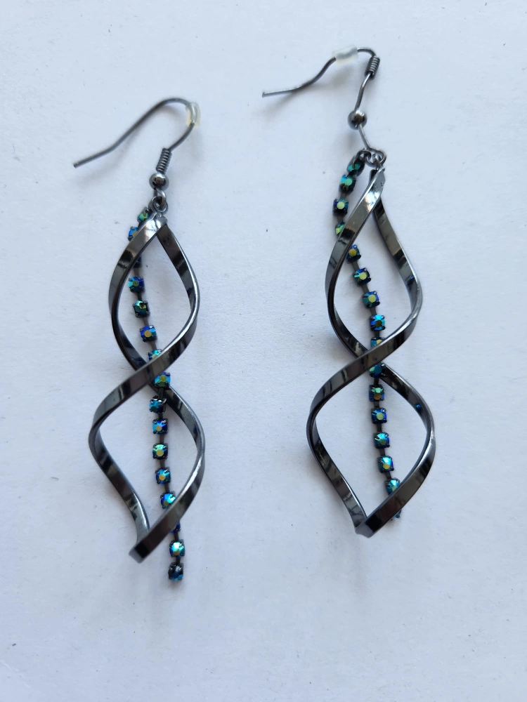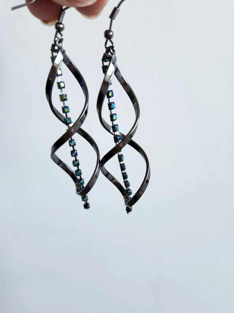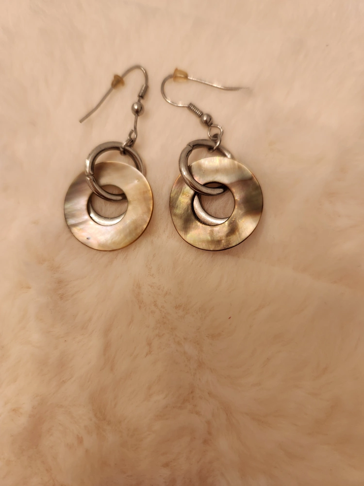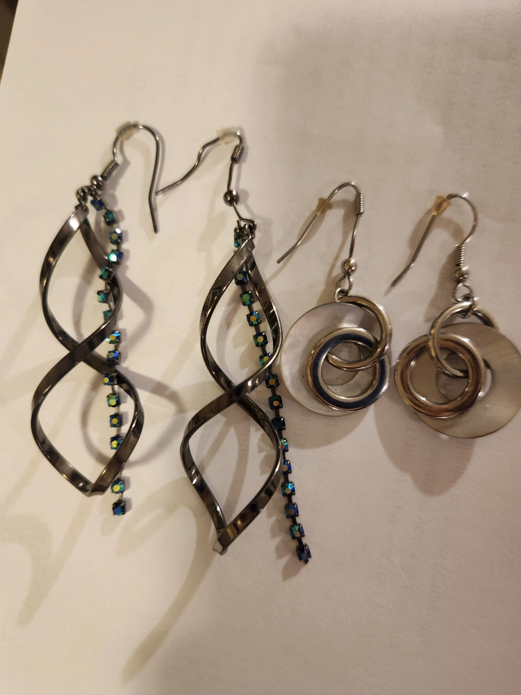 189Set of two pairs of earrings. One pair is black with iridescent rhinestones, the other pair has a shell and metal design. feel free to check my other listing