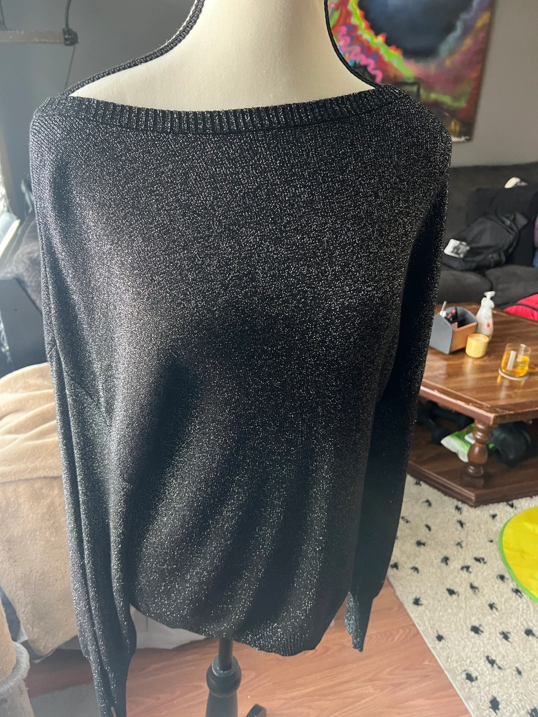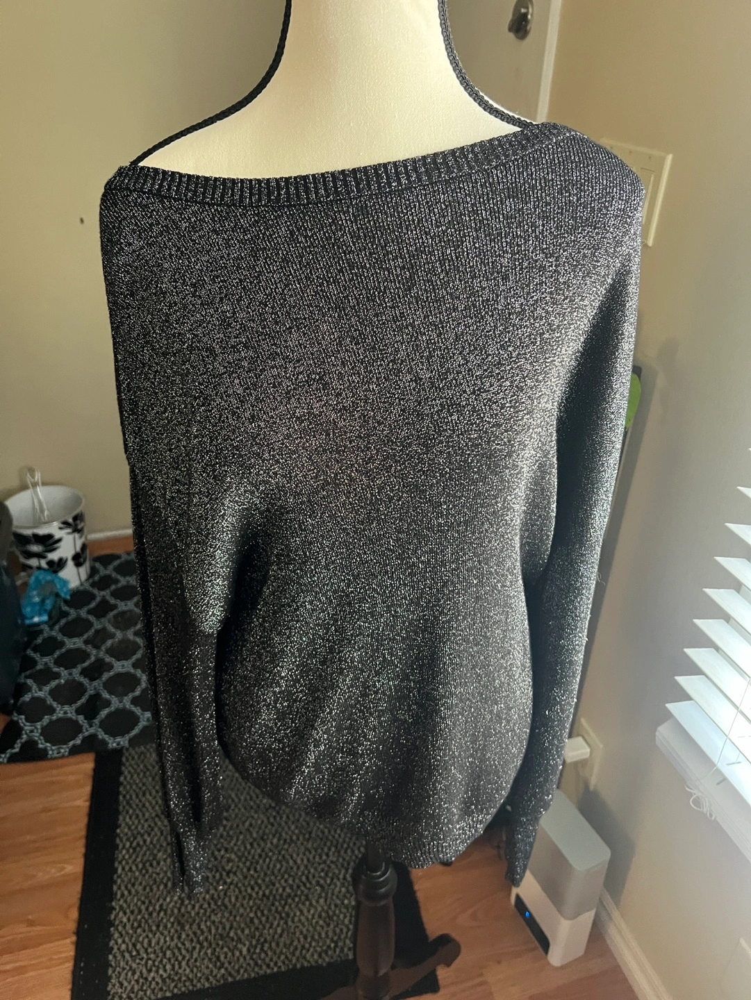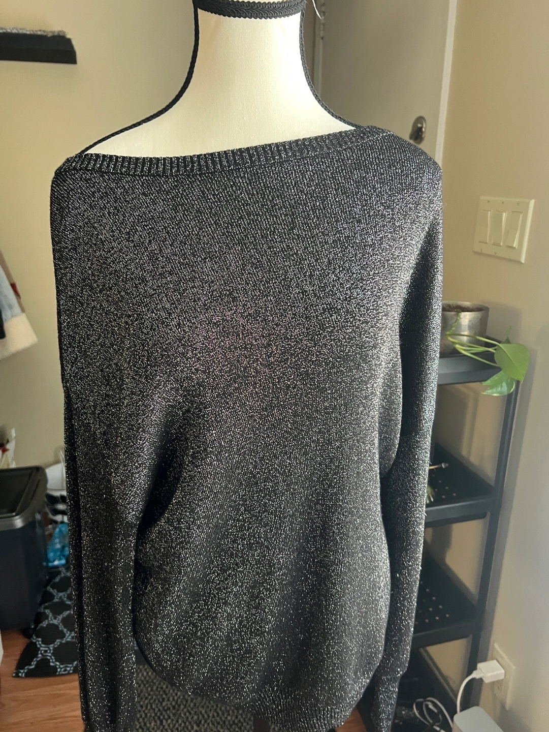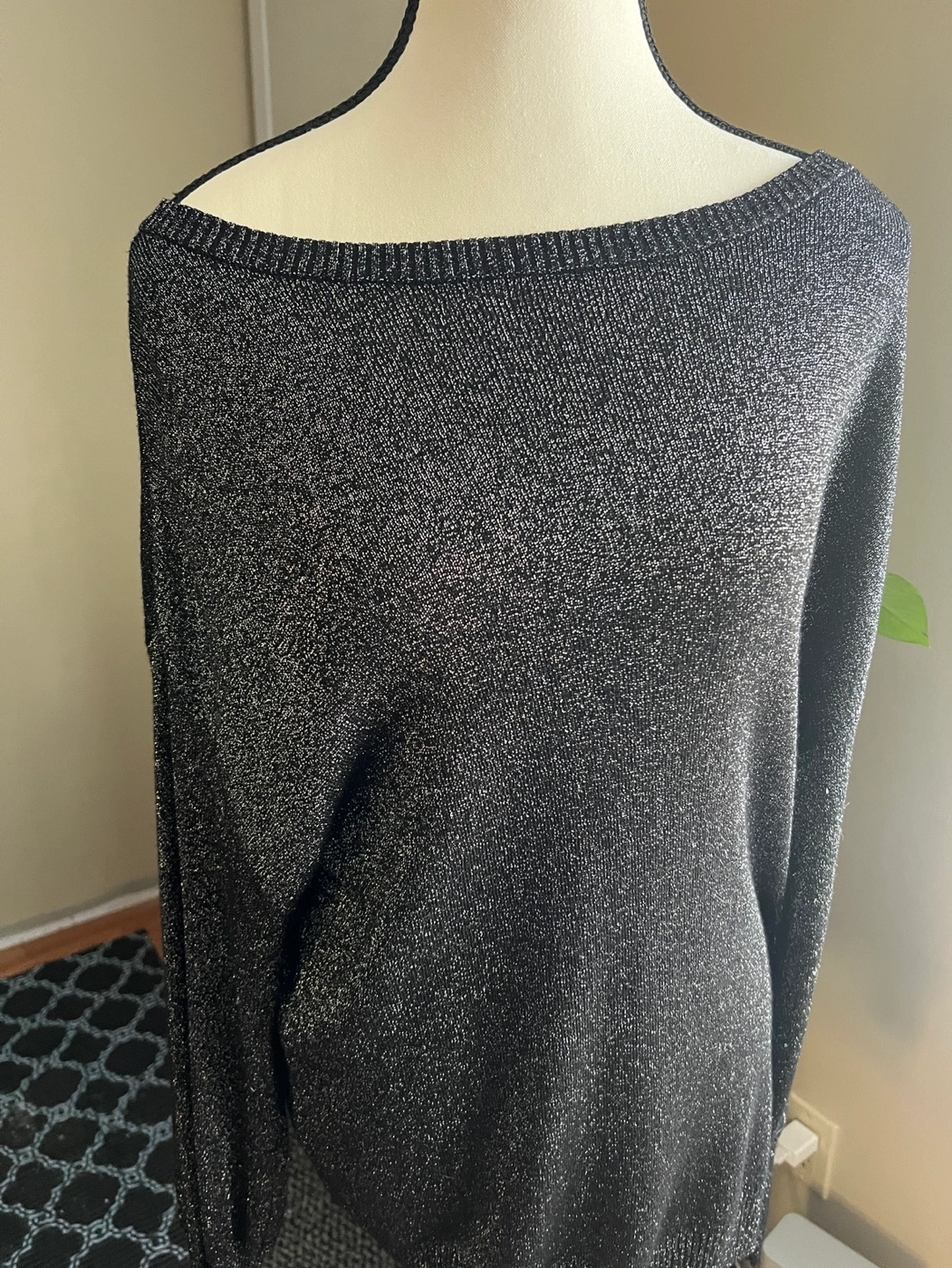 Black sweater with silver glitter. Long sleeves. Relaxed fit. 2xL