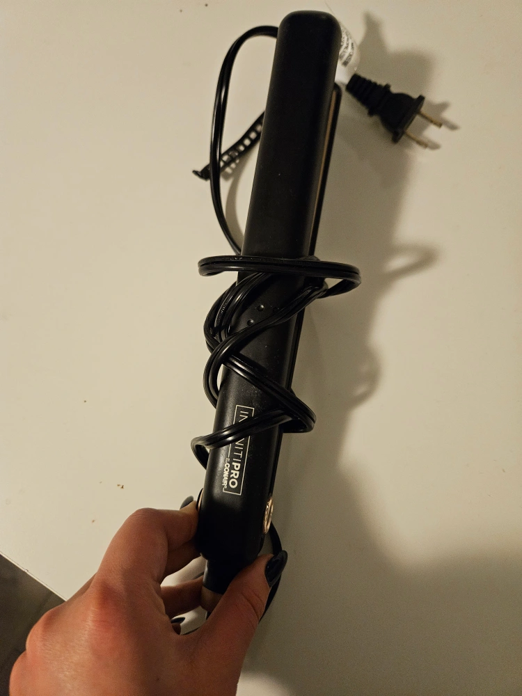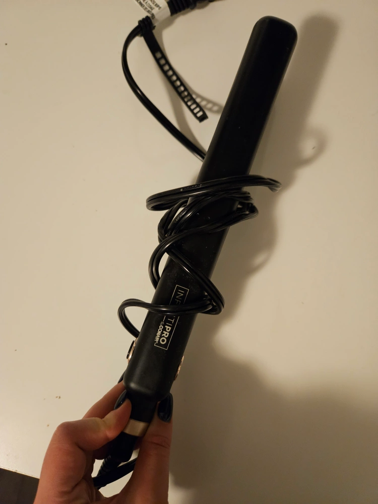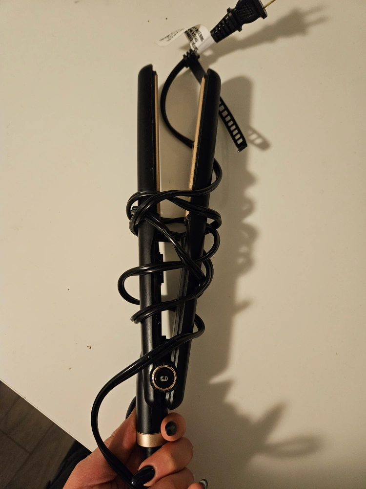 Black and gold hair straightener with temperature control. Includes cord and plug.I got a new one as a gift so I'm selling this one it's basically new i might have used it 10 times only.