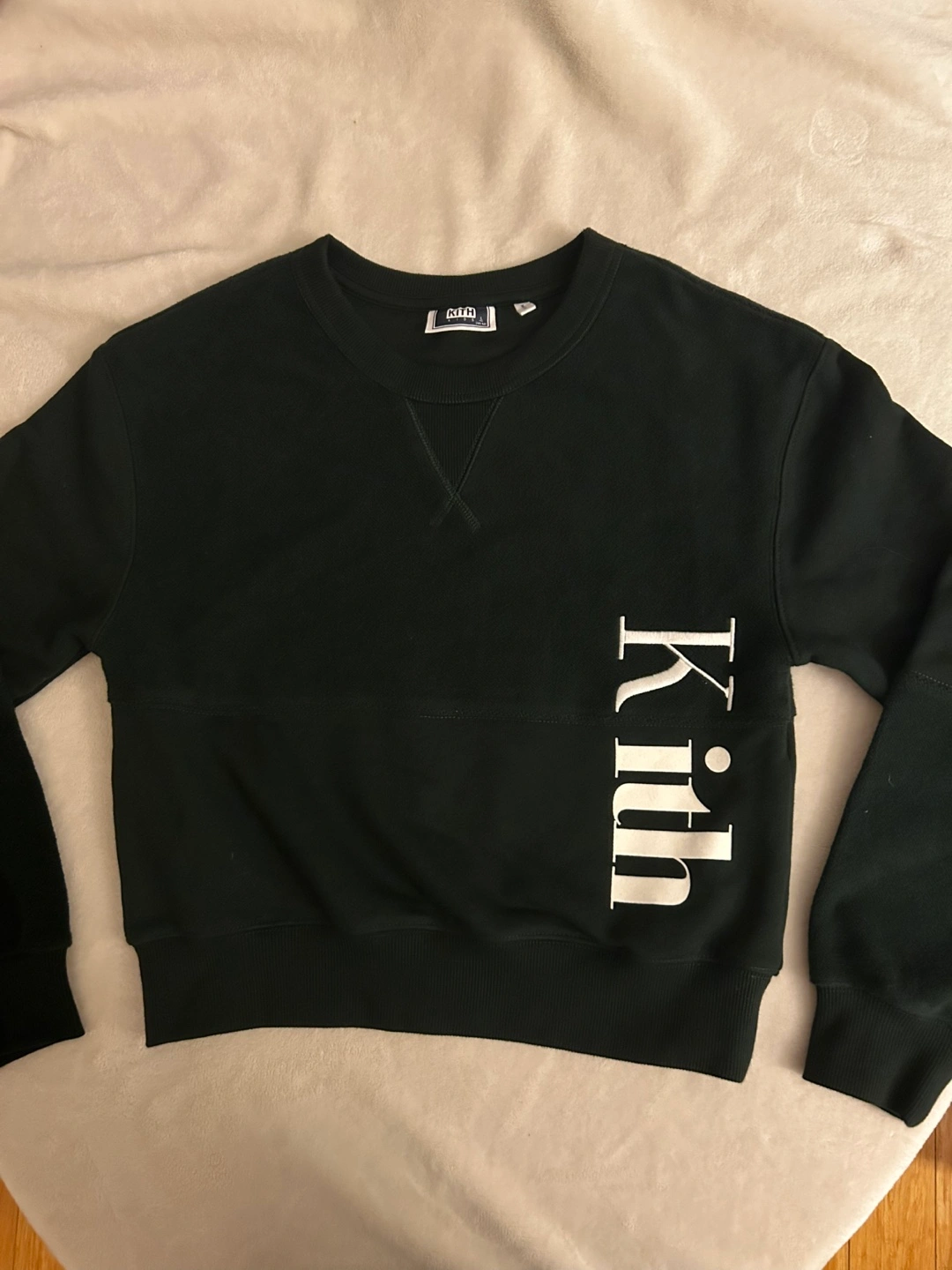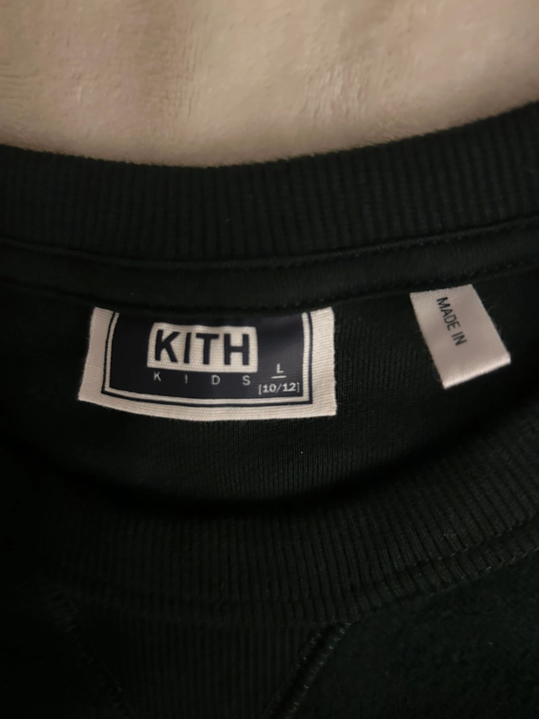 Black sweatshirt with white Kith logo on the side. Size Large fits 8/10. Boys or girls New never worn
