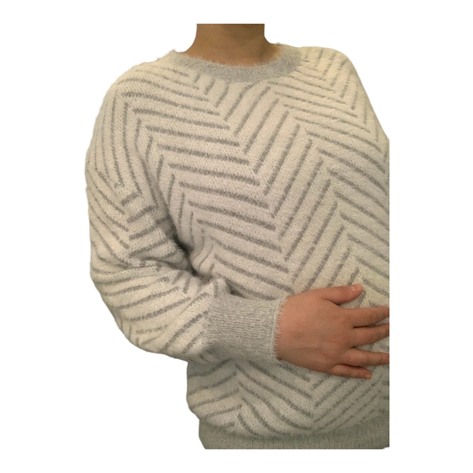 .Soft and warm (cotton) white & cream sweater with a chevron pattern
