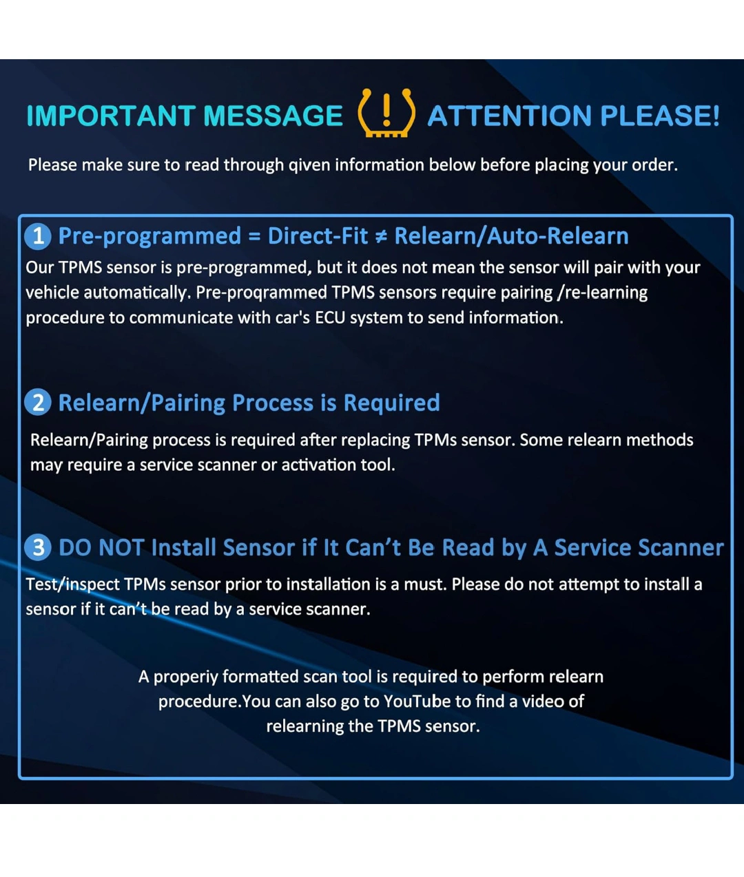 Universal TPMS Sensor 434MHz Tire Pressure Monitoring System Sensors Compatible with most vehicle Brands and model.