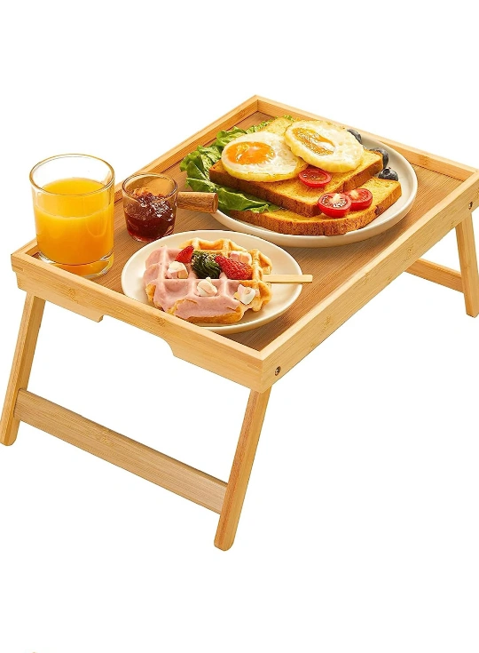 Pipishell Bamboo Bed Tray Table with Foldable Legs, Breakfast Tray for Sofa, Bed, Eating, Working, Used As Laptop Desk Snack Tray.