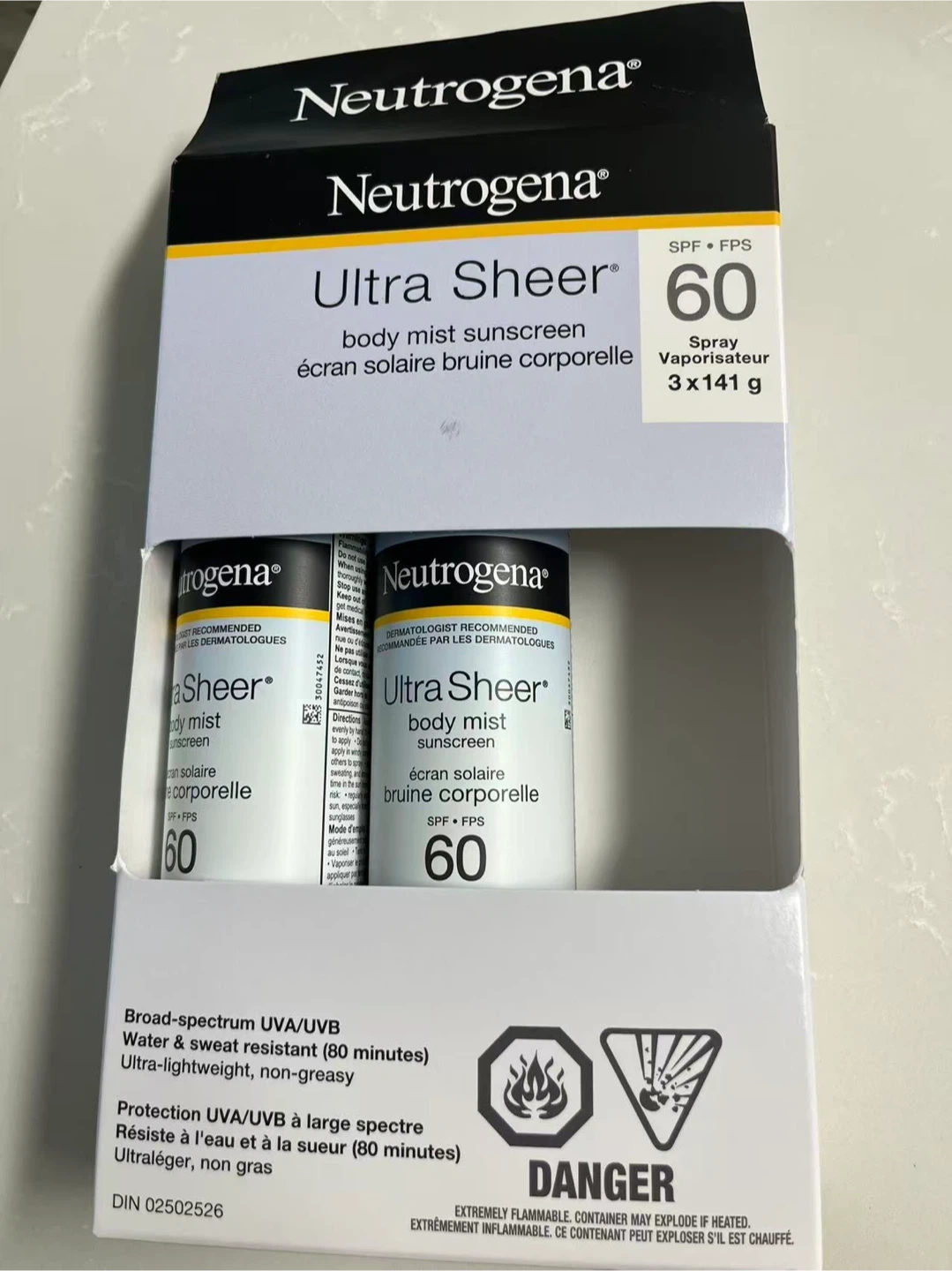 Neutrogena Ultra Sheer Body Mist Sunscreen SPF 60 (3 x 141g)