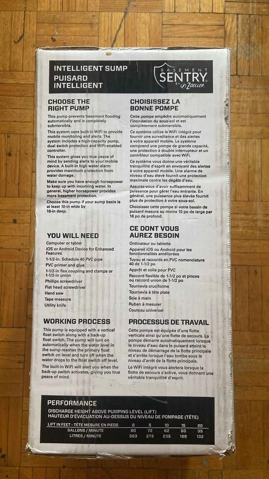 Stay dry with this Wi-Fi sump pump. It has a max. flow rate of 4,800 GPH, handles solids up to 3/8 in. and features continuous system monitoring, a thermoplastic vortex impeller and a dual switch with built-in high-water alarm. Wi-Fi is built right in, so no additional components are needed. Continuous system monitoring allows user to receive emails, texts and in-app alerts. Dual switch with built-in high water alarm for maximum protection.