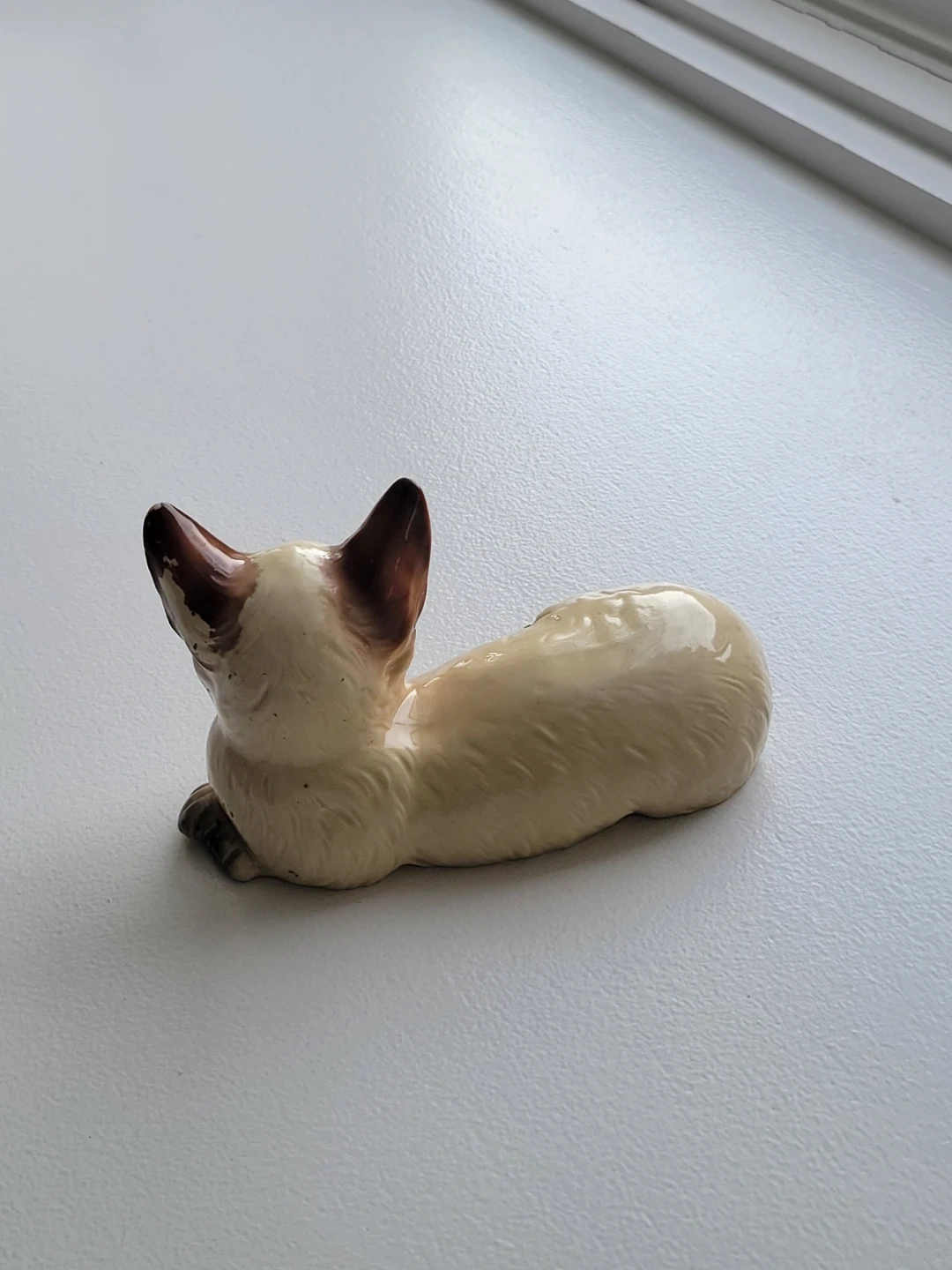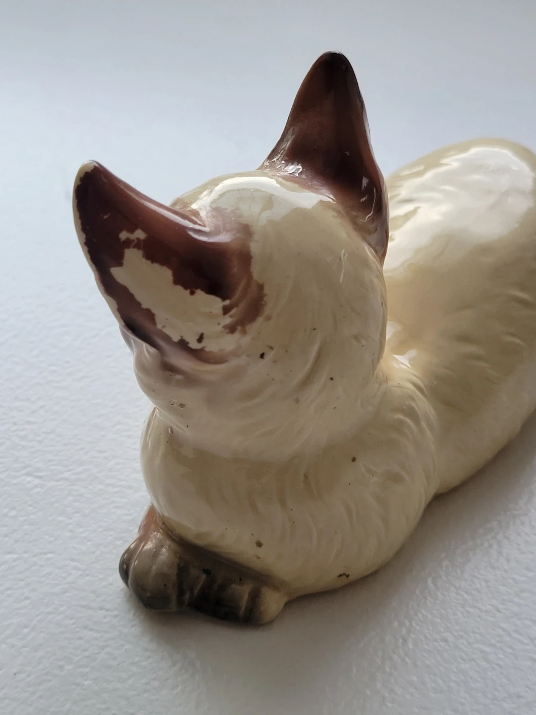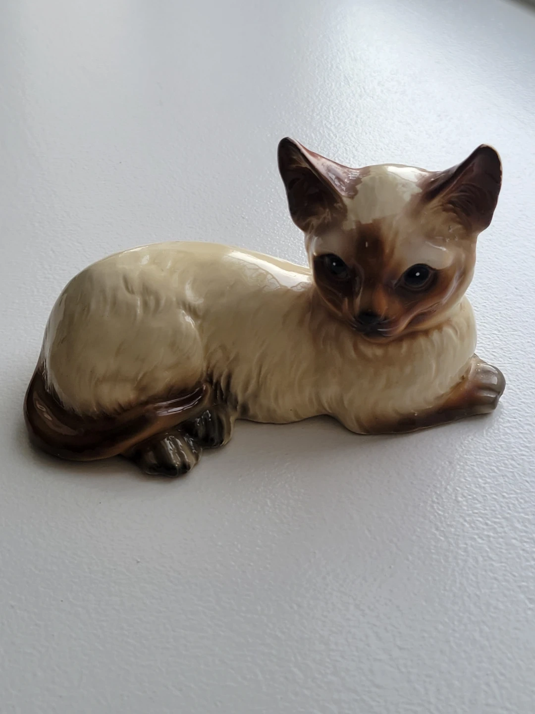 Vintage Siamese cat figurine, perfect for collectors or cat lovers! It has a charming, lifelike pose and beautiful detailing.