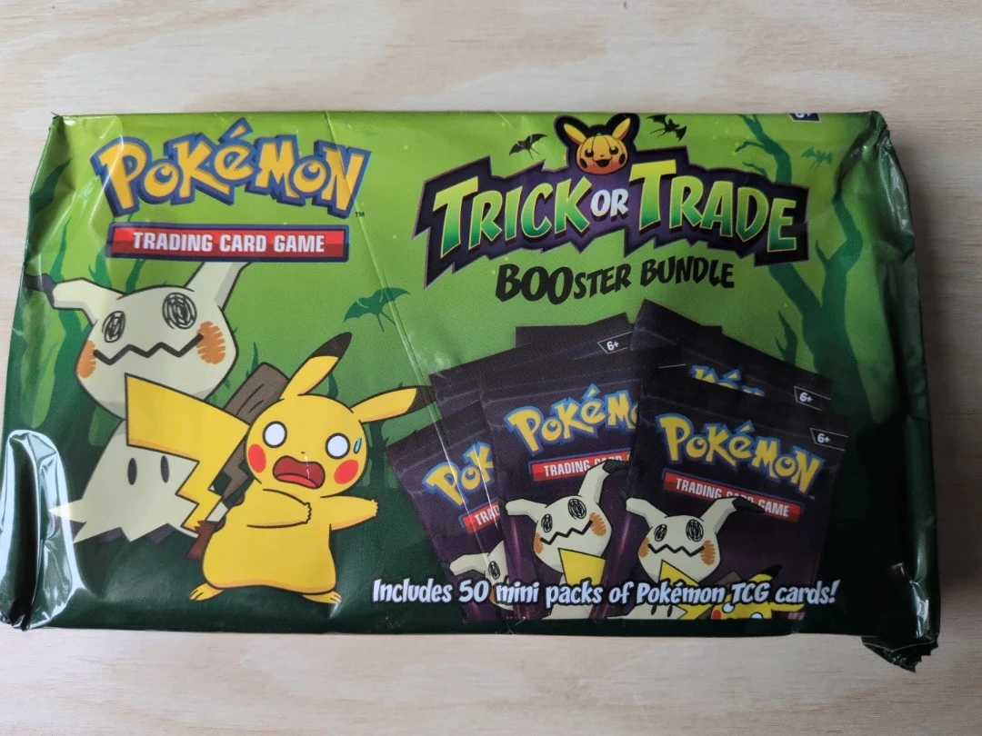 This Pokemon Trick or Trade Booster Bundle includes 50 mini packs of Pokemon TCG cards. It's perfect for Halloween fun and trading card game excitement!