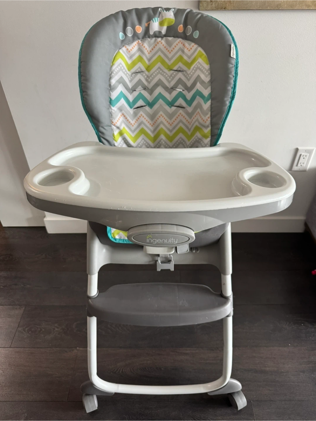 Ingenuity Trio high chair Selling a sturdy and The tray is removable for easy cleaning. It's great for mealtime with your little one!
