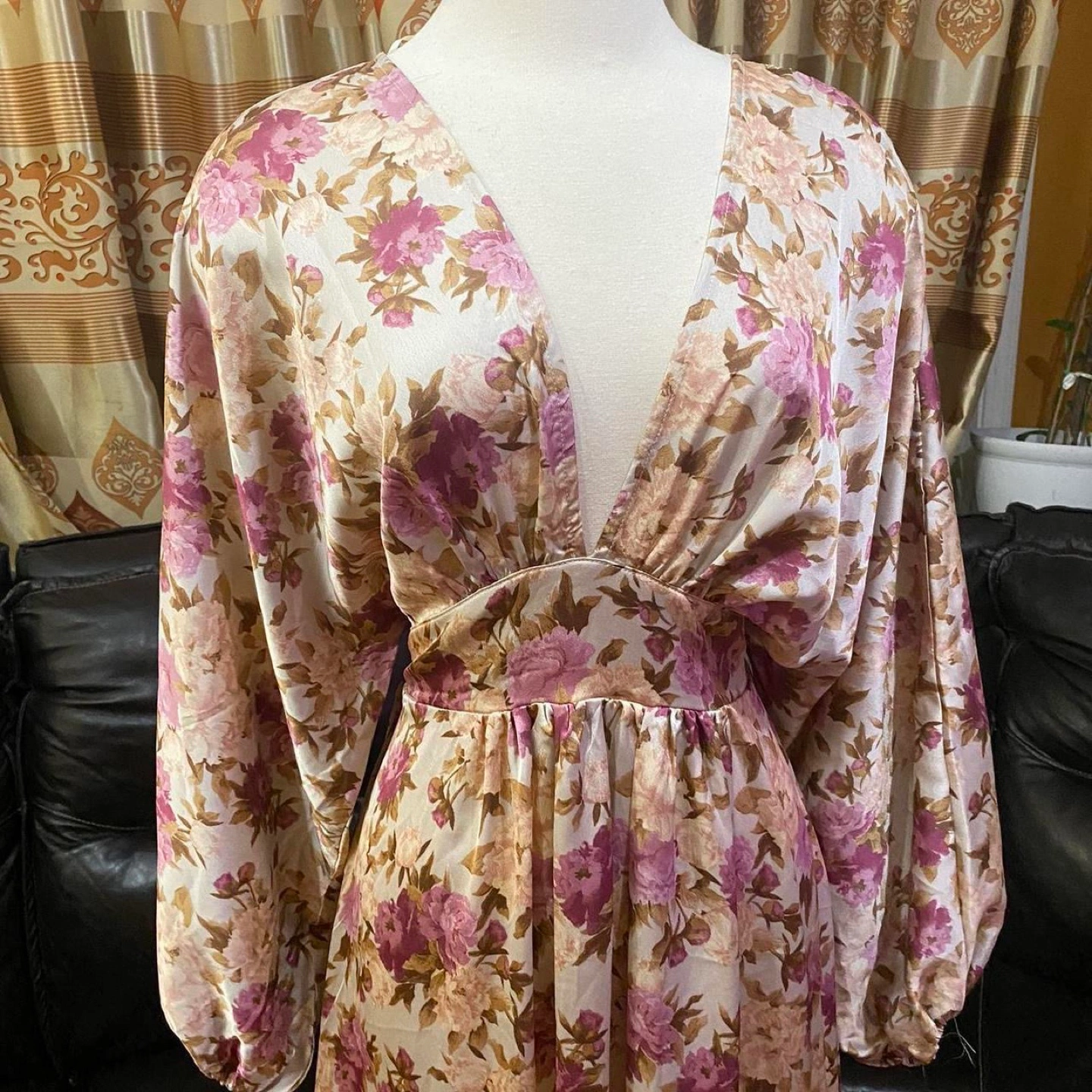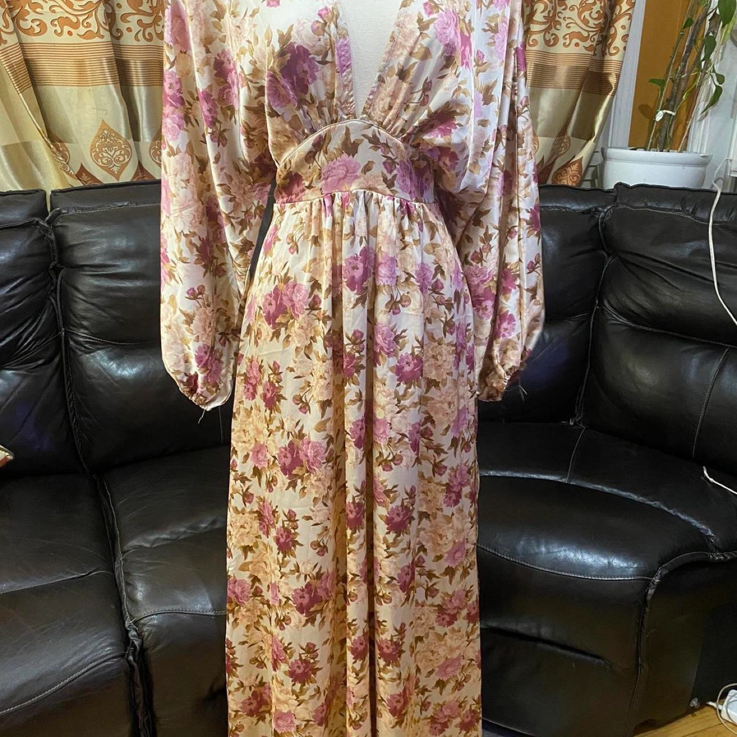 Aakaa Anthropolgie Long Sleeve V neck Floral Dress