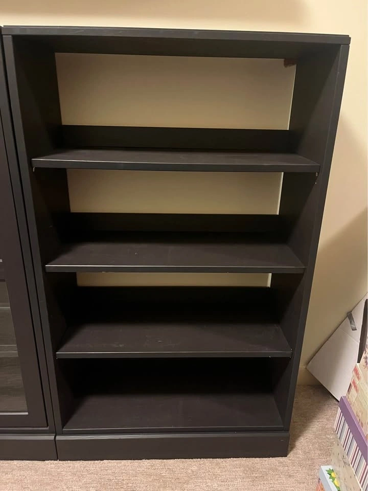 Two Ikea Havsta bookshelves with bases, black/brown color. Size 31.9" x 53.15" x 14.5". $125 each or $200 for both. Must be able to pick up in Sherwood Park.