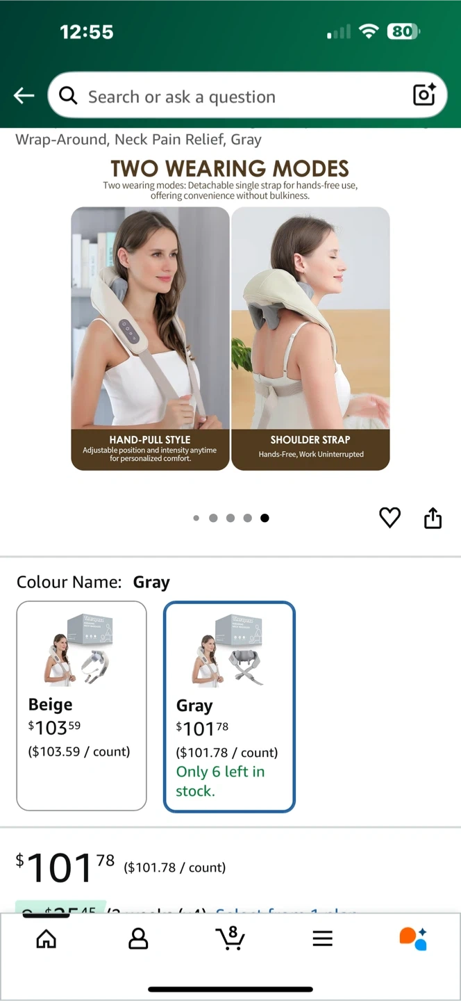 I'm selling an XTO Kneading Neck Massager in gray! It comes with two wearing modes: hand-pull style and shoulder strap. It features wireless, heat, and 5D kneading functions. The box is included, along with instructions. Originally bought for $101.78