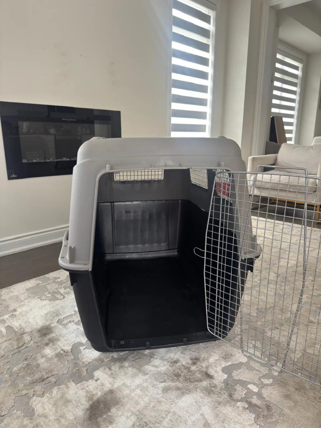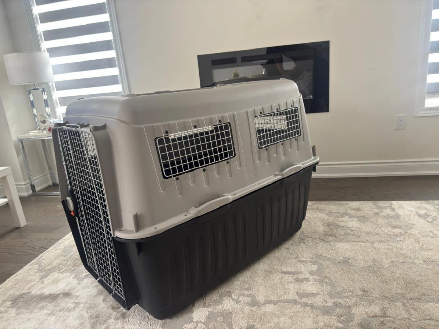 Selling a Petmate Sky Kennel pet carrier in great condition! It's perfect for travelling with your furry friend or for providing them with a safe and comfortable space at home. The kennel is sturdy and well-ventilated, ensuring your pet's comfort and safety during transport.