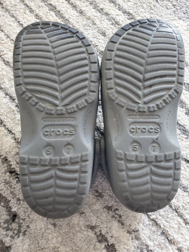 Buy & SellCrocs for saleCrocs for sale$15Crocs for sale. These Crocs are used. Mens size 5 Women's size 7 Colour: Grey Official Crocs ConditionGoodWHERE TO MEET745 Stevenson Rd NView MapSELLERPhoenixNorthglen424 reviews0 chats·0 favorites·31 viewsSEND CHAT TO SELLERHi Phoenix! I’m interested in your listing.Hi Phoenix! I’m interested in your listing.Get the Karrot app to chatSign In to chat