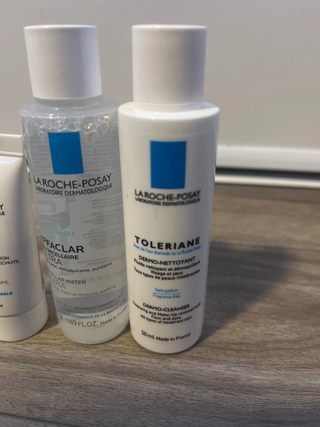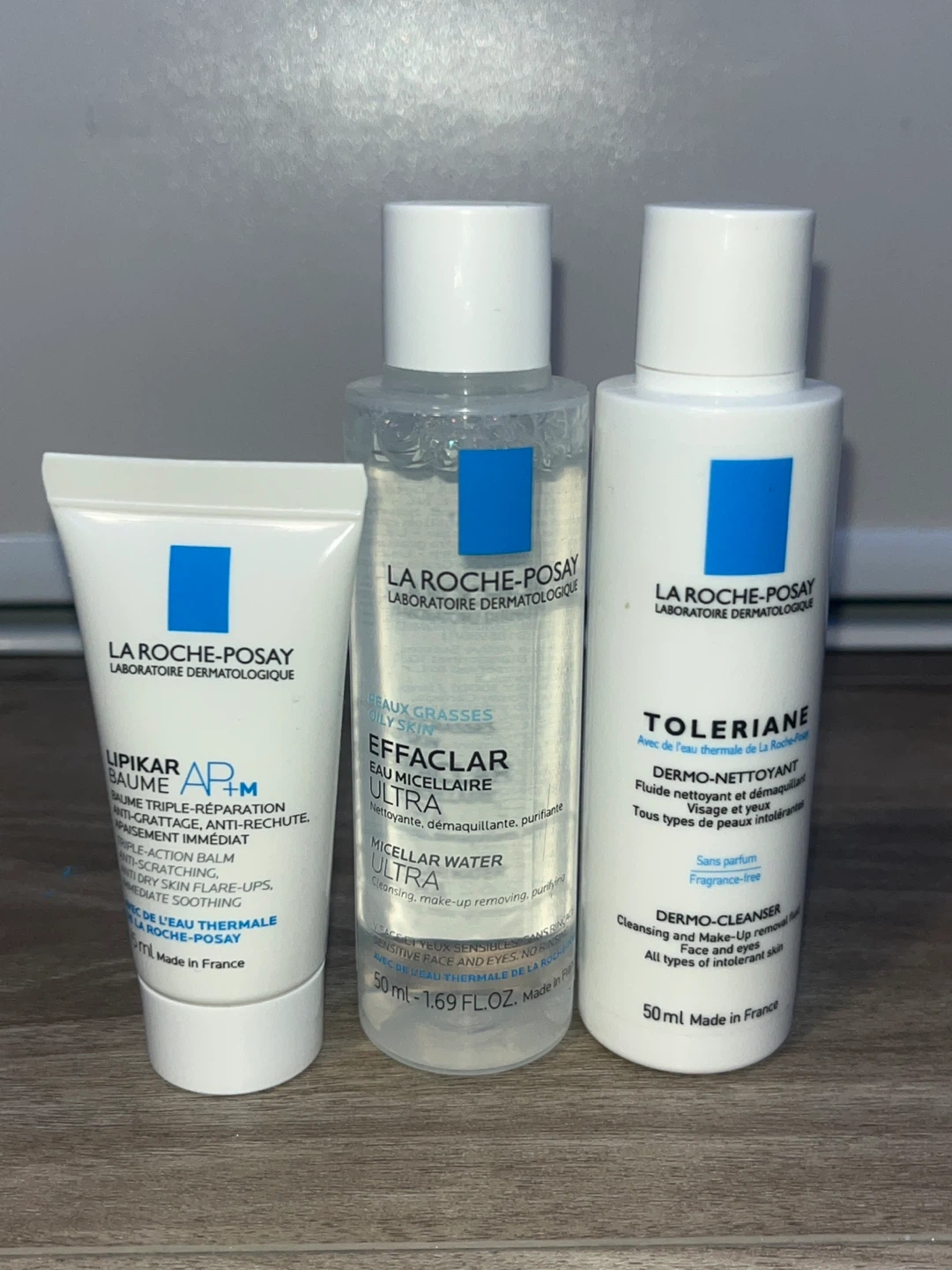 This set includes La Roche-Posay Toleriane Dermo-Cleanser and Effaclar Micellar Water Ultra. Both are fragrance-free and designed for sensitive skin. The cleanser is 50ml, and the micellar water is also 50ml.