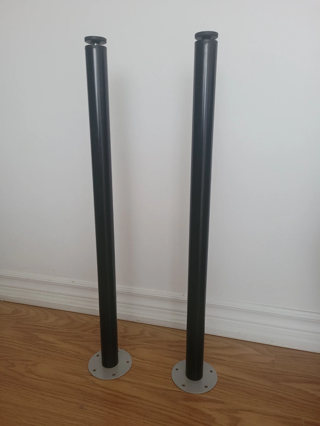 Selling a pair of ikea black metal furniture legs. They have adjustable feet for levelling. These legs are about 28 inches tall. Suitable for a table or cabinet project!
