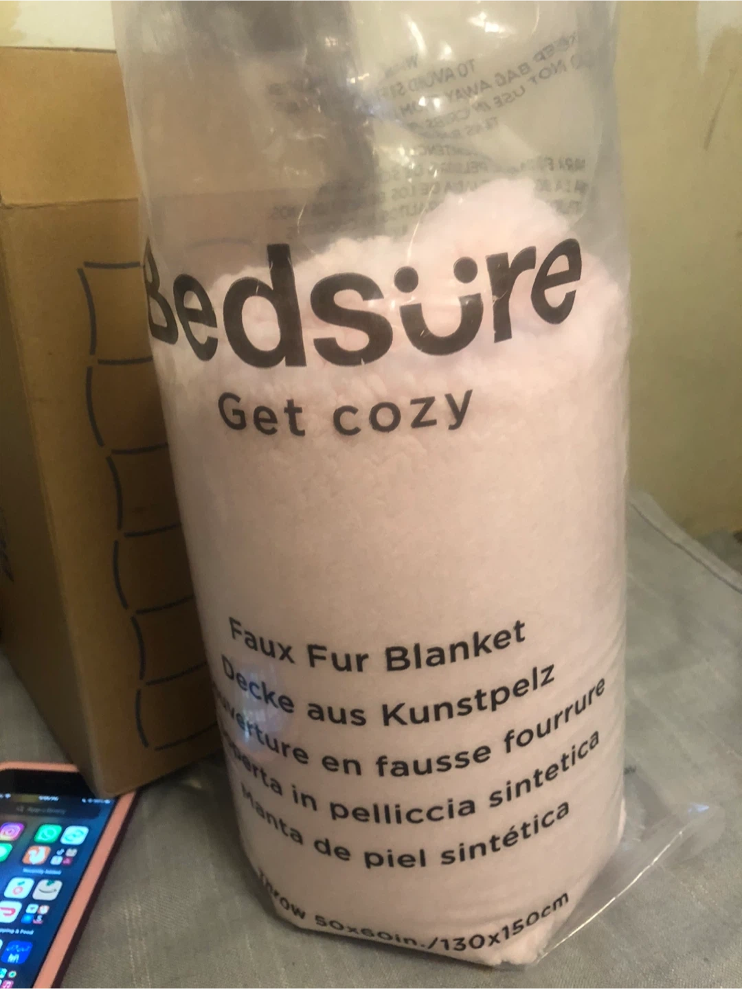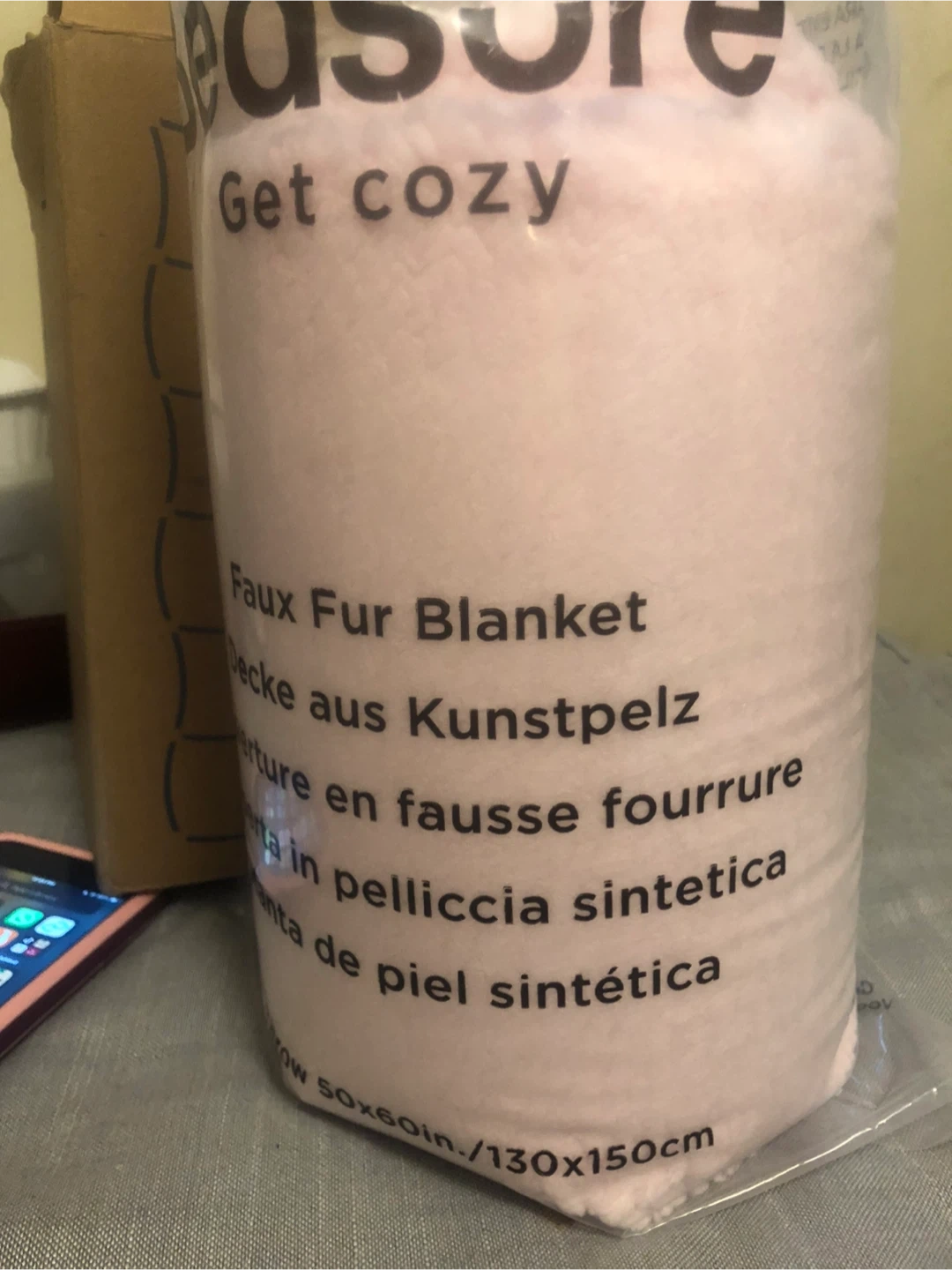Selling a brand new Bedsure faux fur blanket! It's a lovely light pink colour and measures 50x60 inches (130x150cm). Perfect for getting cozy on the couch!