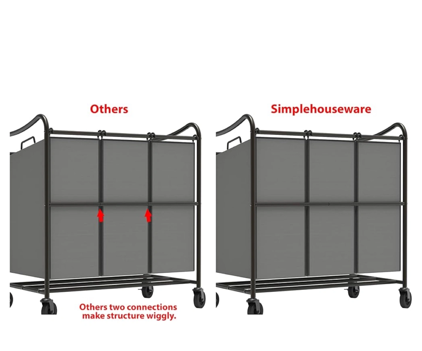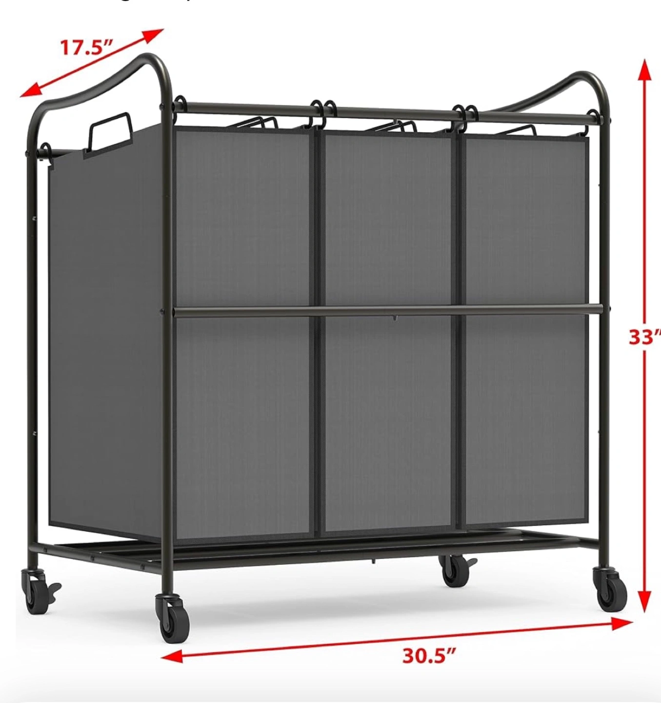 SimpleHouseware 3-Bag Rolling Laundry Sorter Cart