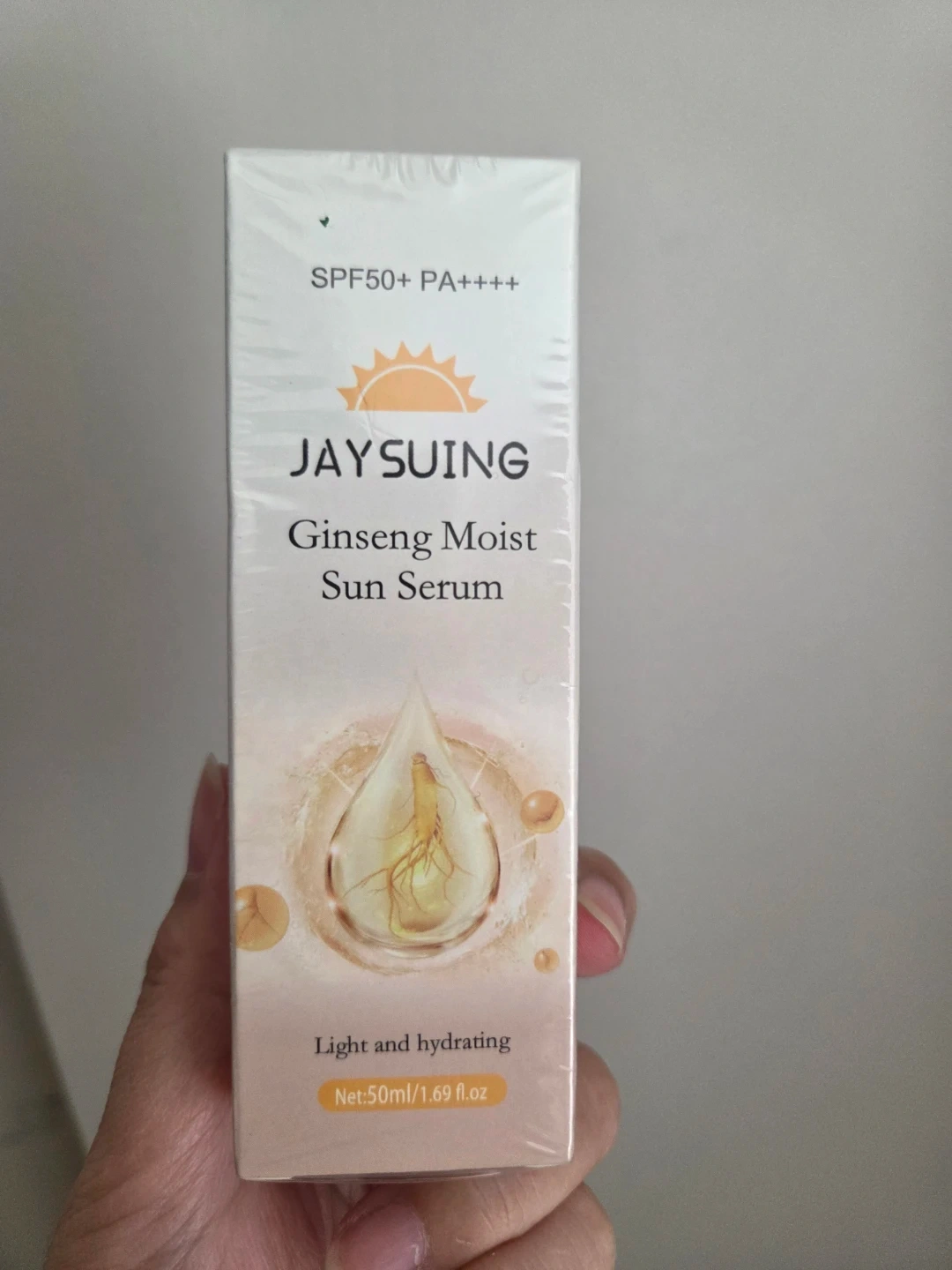This sun serum contains ginseng for moisture. It offers SPF50+ and PA++++ protection. Net weight is 50ml or 1.69 fl.oz. Expiry date is October 31, 2026.