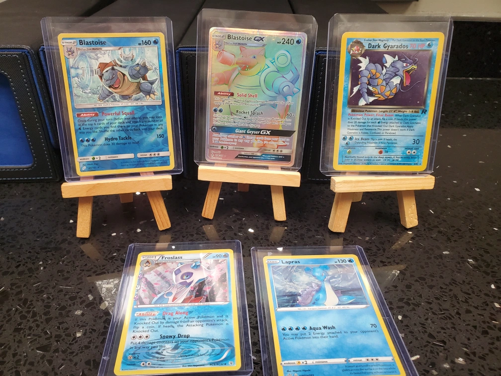 Selling a few Pokemon trading cards! Includes Blastoise, Lapras, and Dark Gyarados. Great for collectors or anyone looking to add to their collection
