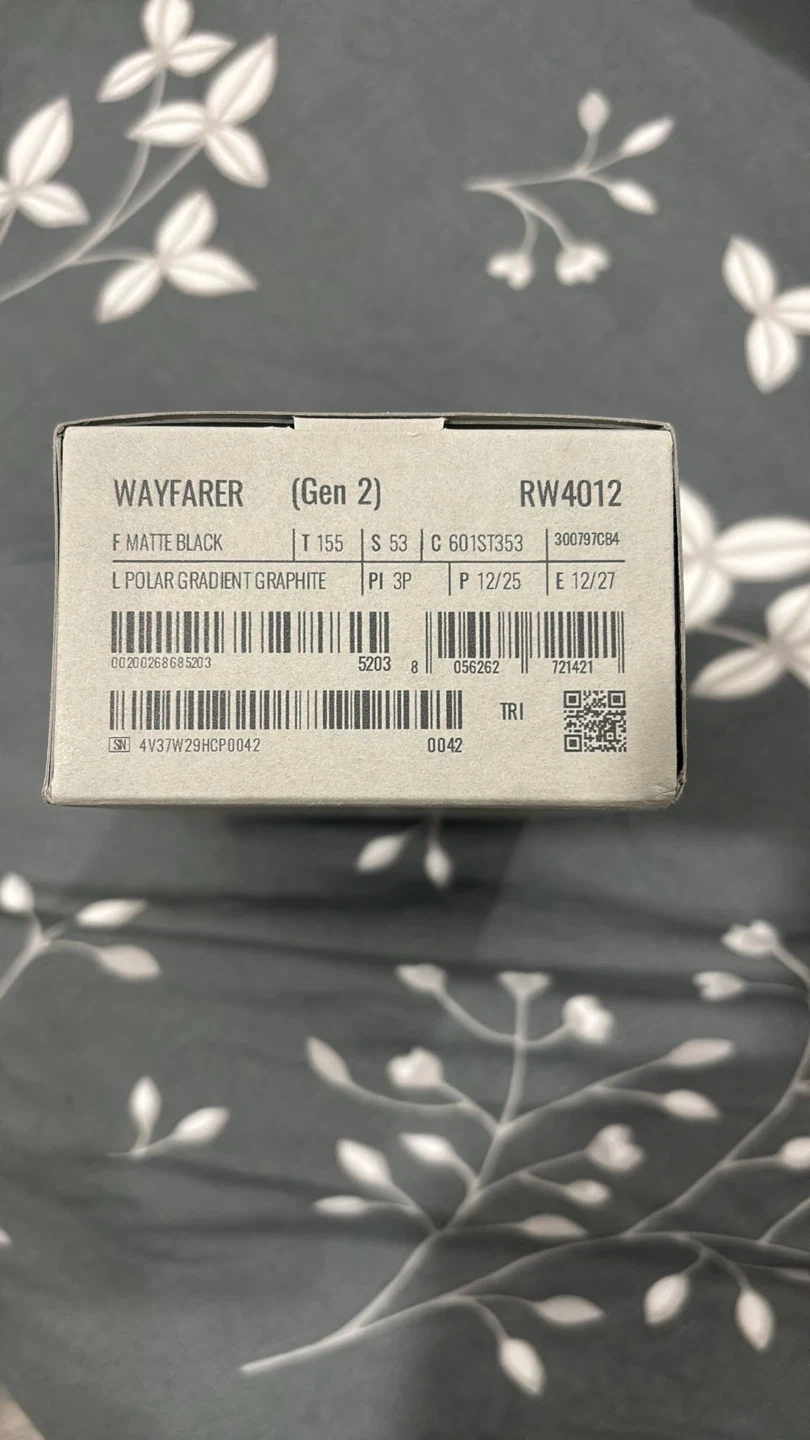 Ray-Ban Meta Wayfarer (Gen 2) sunglasses in matte black. These glasses feature polarized graphite lenses. They connect to your phone for open-ear audio and camera functions. Built-in camera and speaker system.