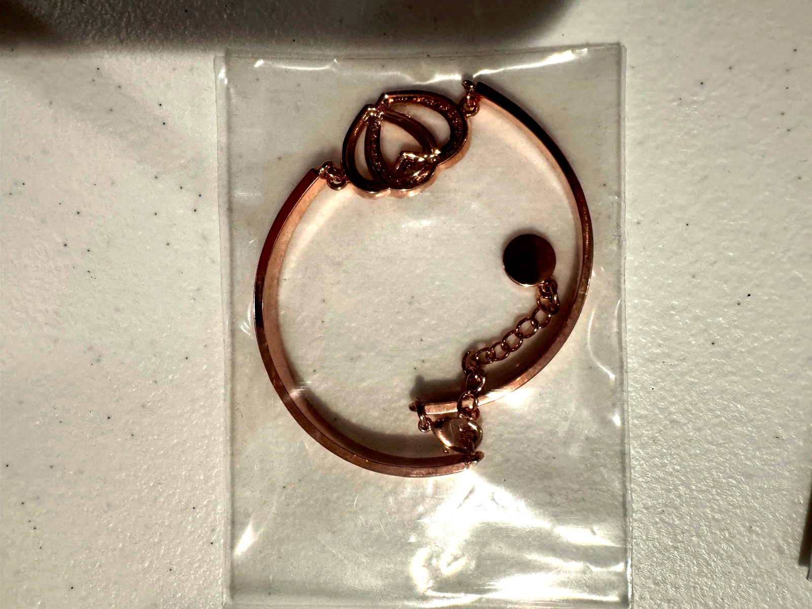 This is a 3-piece layered bracelet set from MJartoria. It features a gold-tone finish with a May birth flower pendant. The metal is 14K plated yellow gold.
