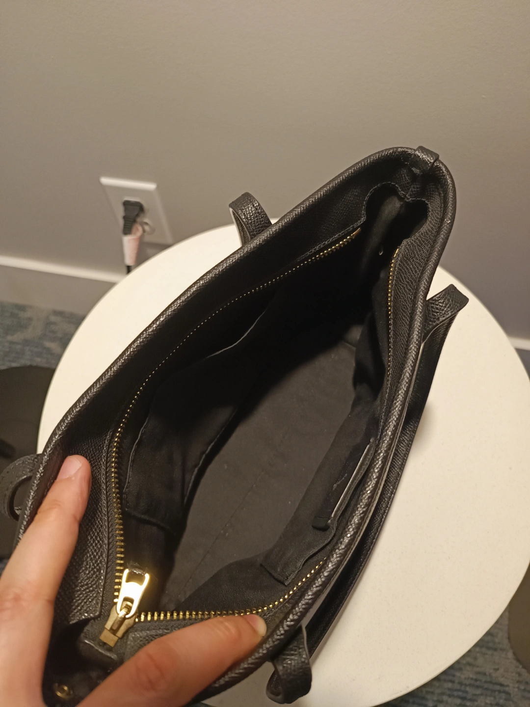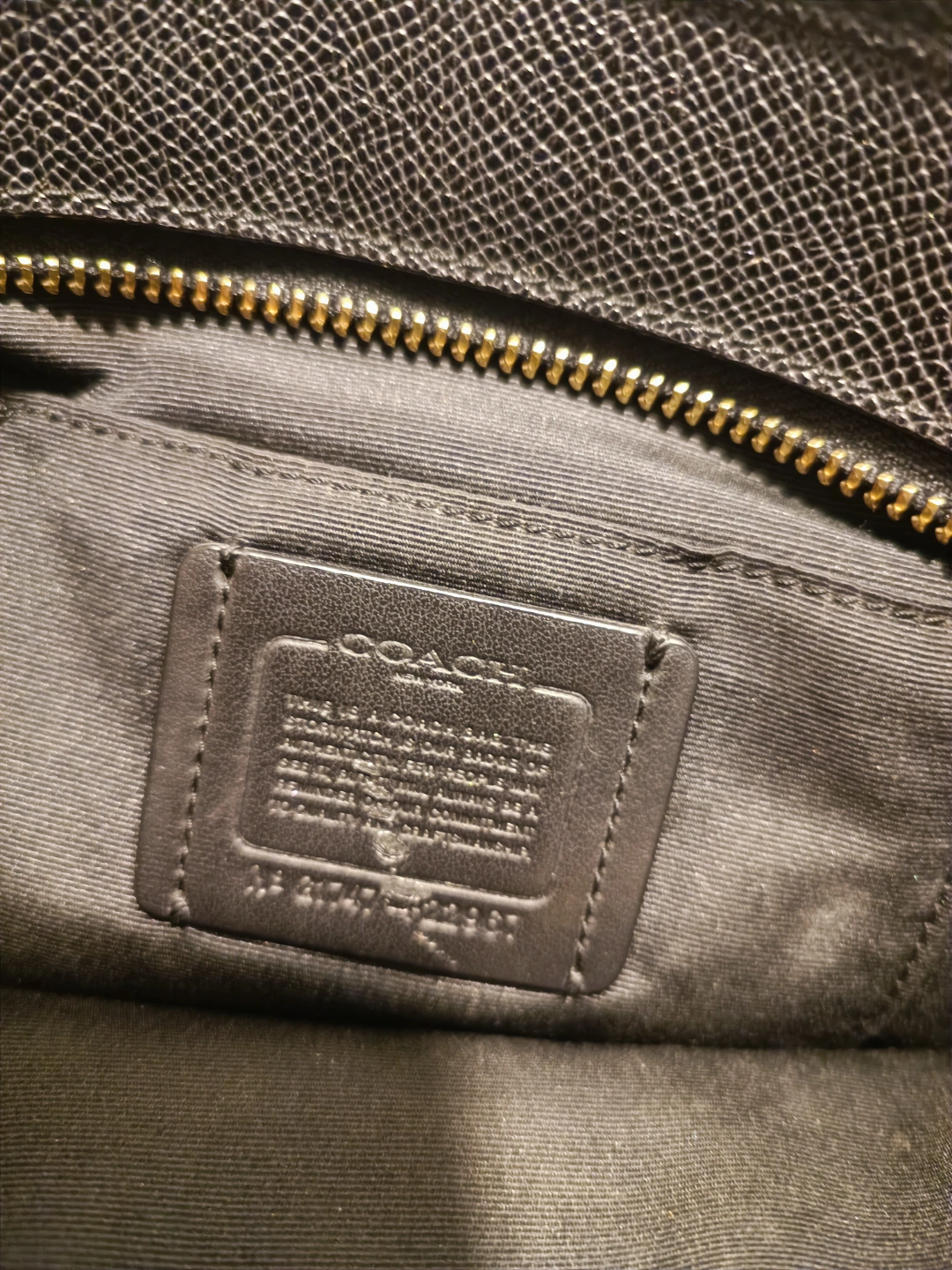 Used Like New COACH Black leather bag. Gold hardware. Top zip closure. Small interior pocket. Shoulder straps. Coach brand tag.