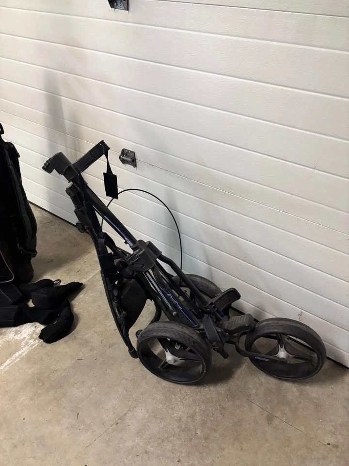 BAG BOY EXPRESS 240. Strong Aluminum frame for durability. Adjustable handle height. Effortless pushing. Quick fold & unfold. High Strength adjustable bag bracket & strap. Hand operated parking brake. Integrated beverage, scorecard, pen & ball holder.