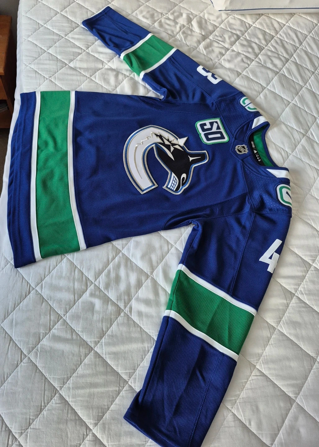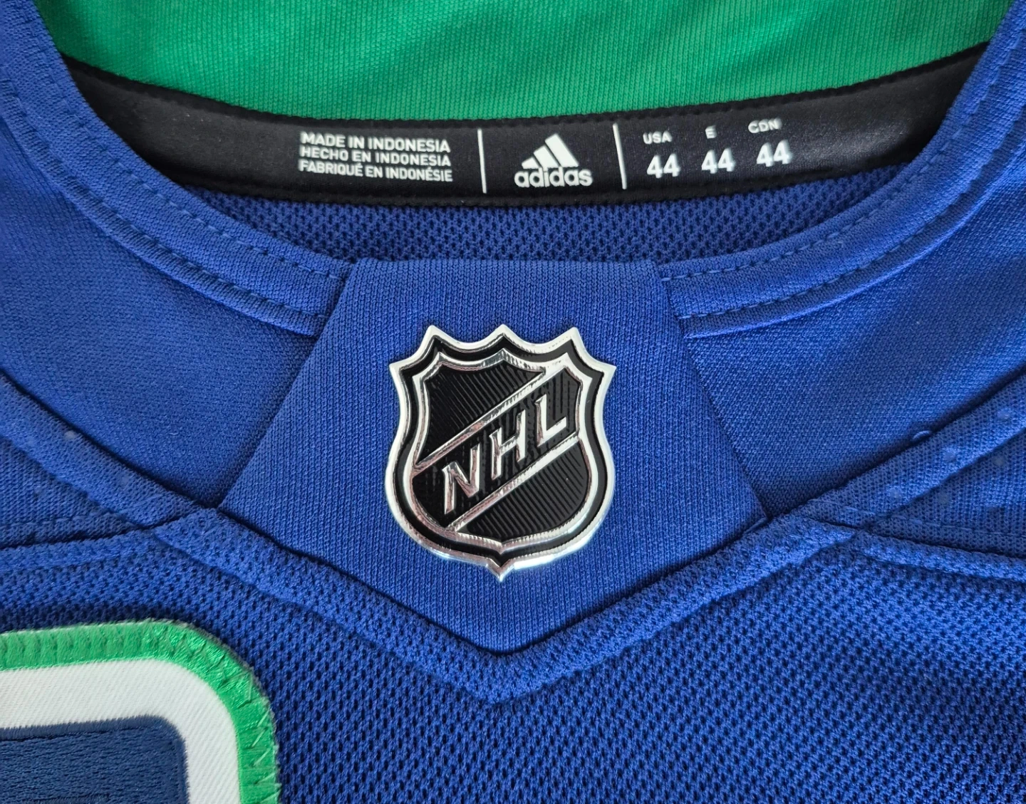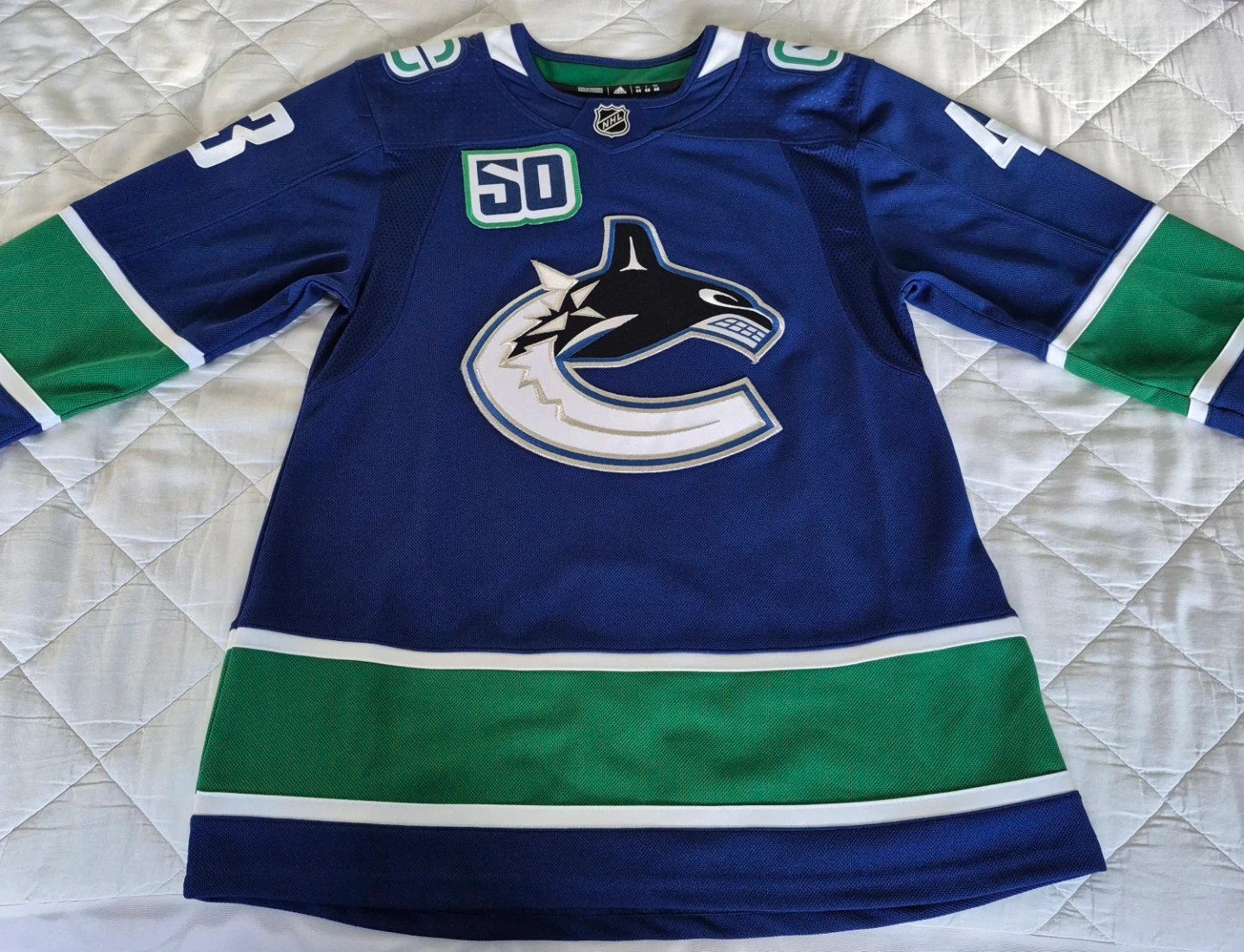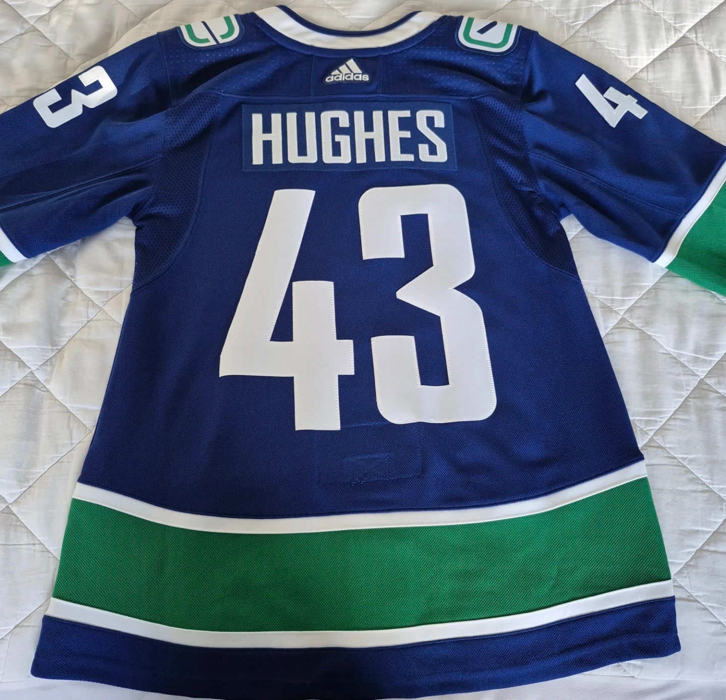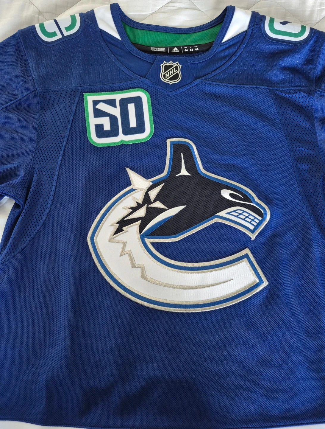 Quinn Hughes size 44 Adidas jersey with 50th Anniversary patch.