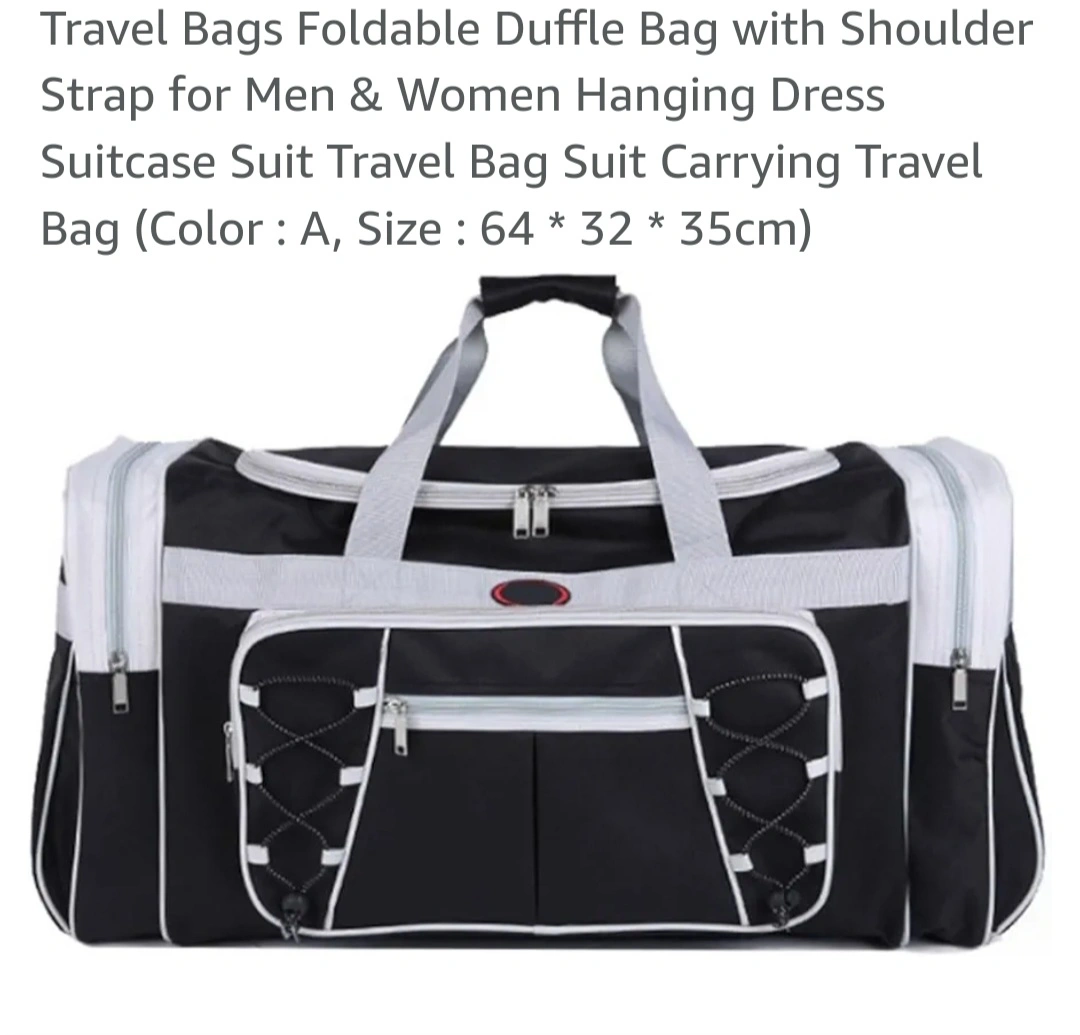 travel bags foldable duffel bag with shoulder strap for men and women hanging dress suitcase suit travel bag suit carrying travel bag. see photos for dimensions. feel free to contact me if you have any questions. thank you