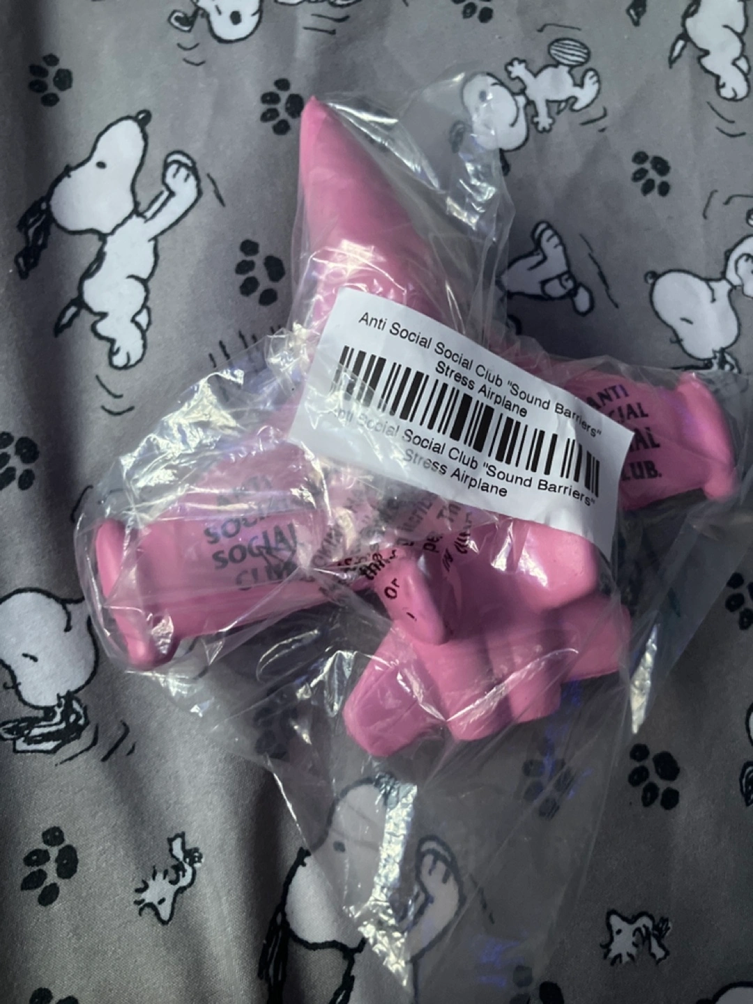 Pink stress toy airplane. Sound barrier inscription on the body. Anti Social Social Club brand. You can also offer it’s negotiable