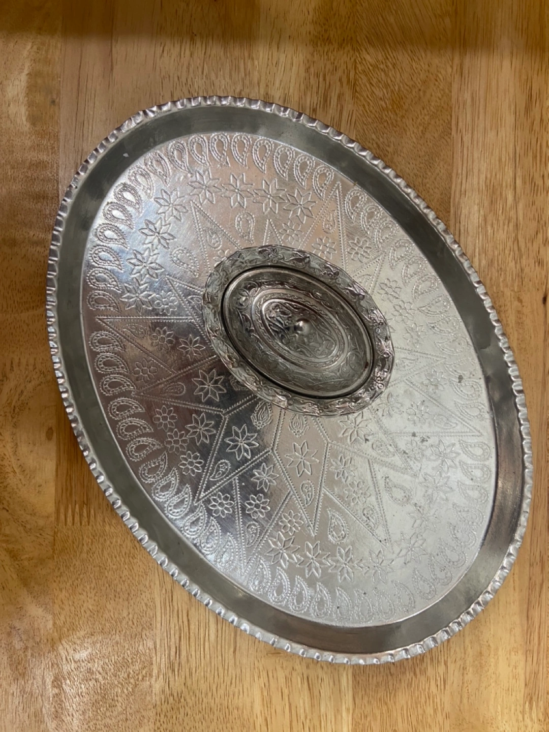 Persian Copper Silver Plated Serving Tray Traditionally Hammered & Engraving