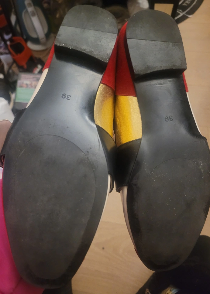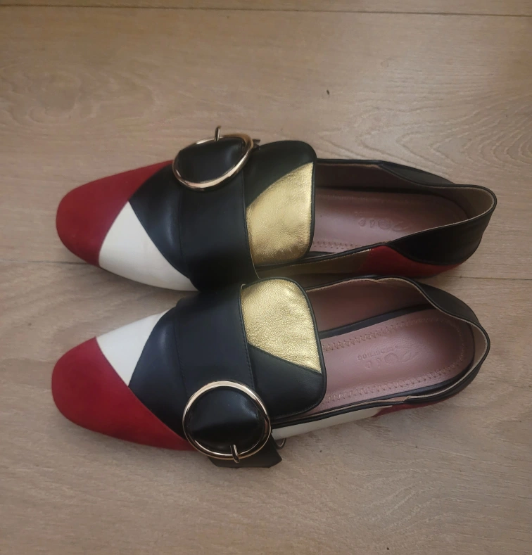 1000+Red, white and black leather loafers with gold detail. Size 39. **** Cash Only **** **** No E-transfers **** **** Pickup Only **** **** Serious Inquiries Only/ Serious Offers Only ****