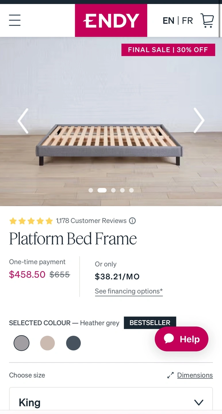 King: Endy Platform Bed Frame & Mattress